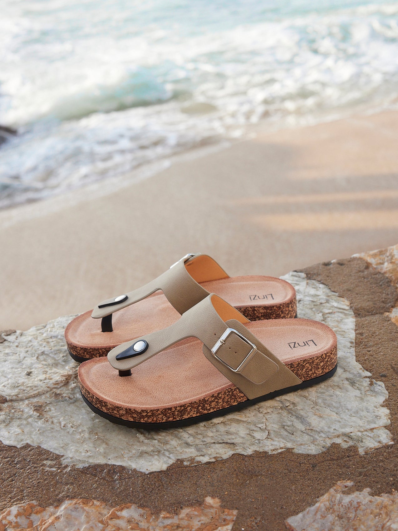 View Taupe Soft Footbed Flat Sandals