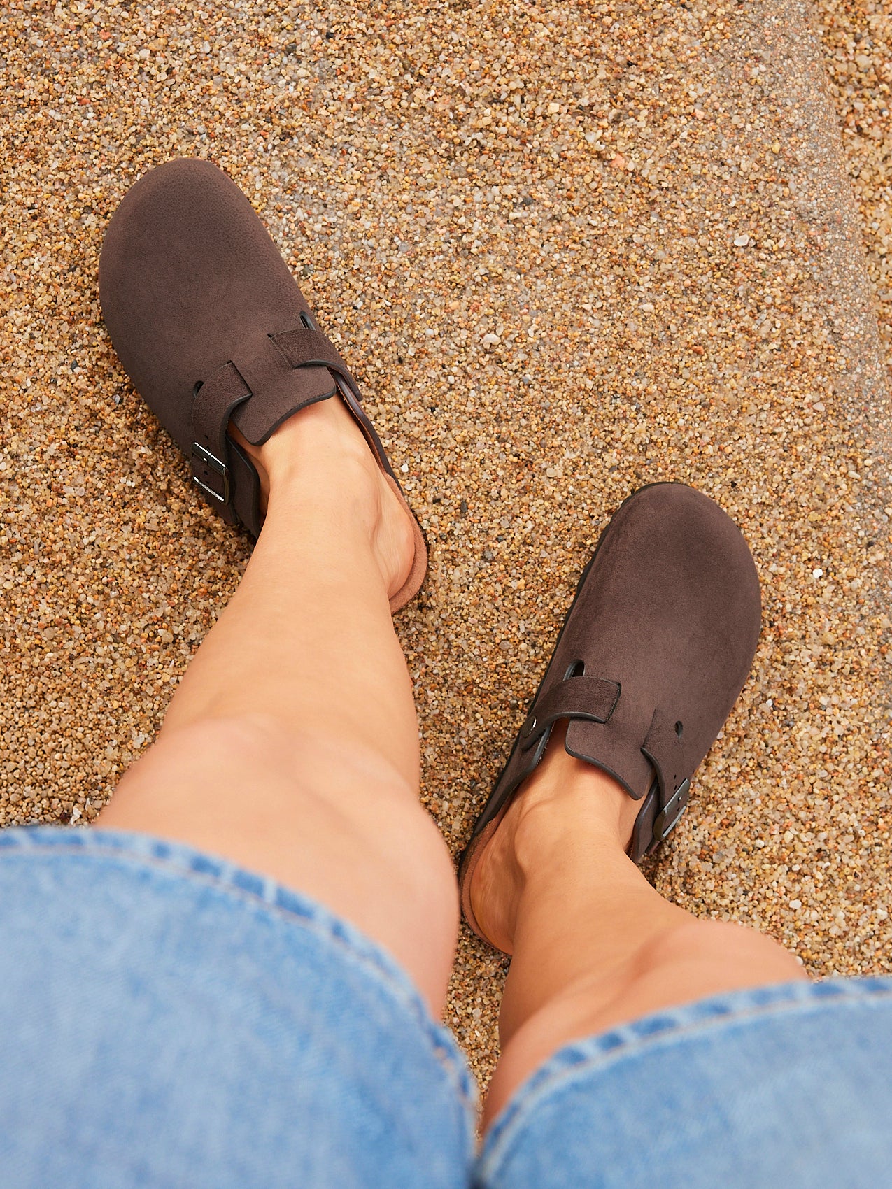 Meet our Cyrus comfort clogs a versatile classic designed to carry you through every season. Adorned with a chic front buckle, these clogs bring a touch of polished style to any outfit. The soft padded footbed ensures all day comfort, making them perfect for all day wear.