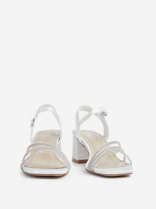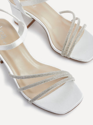 Wide Fit Ivory Satin Open Back Heel With Diamante Triple Front Strap