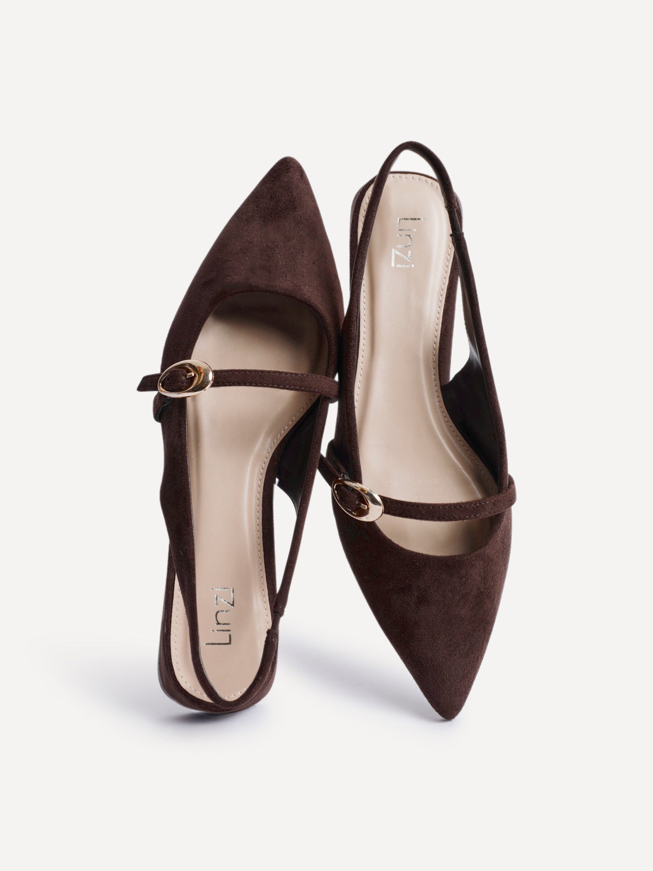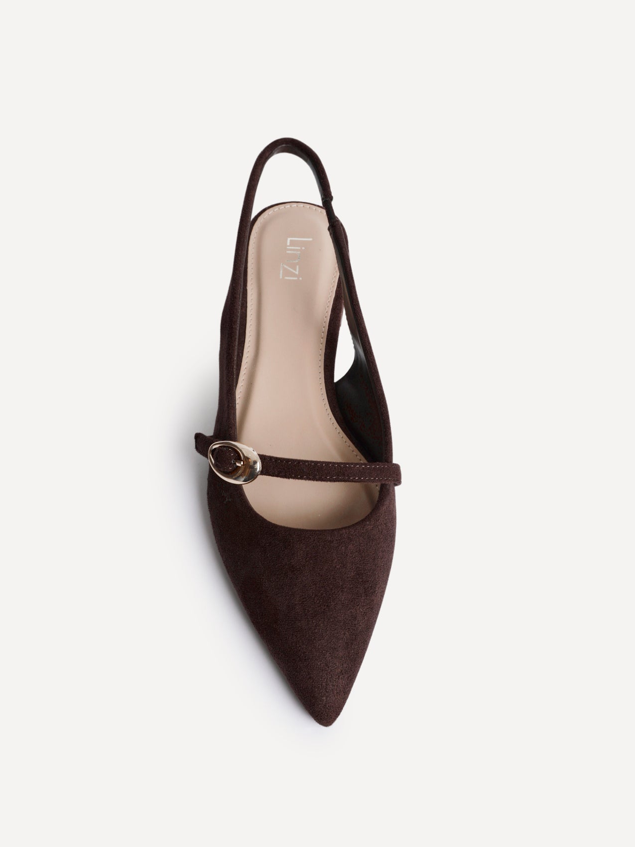 Brown Faux Suede Pointed Toe Ballet Flat With Buckle Detail