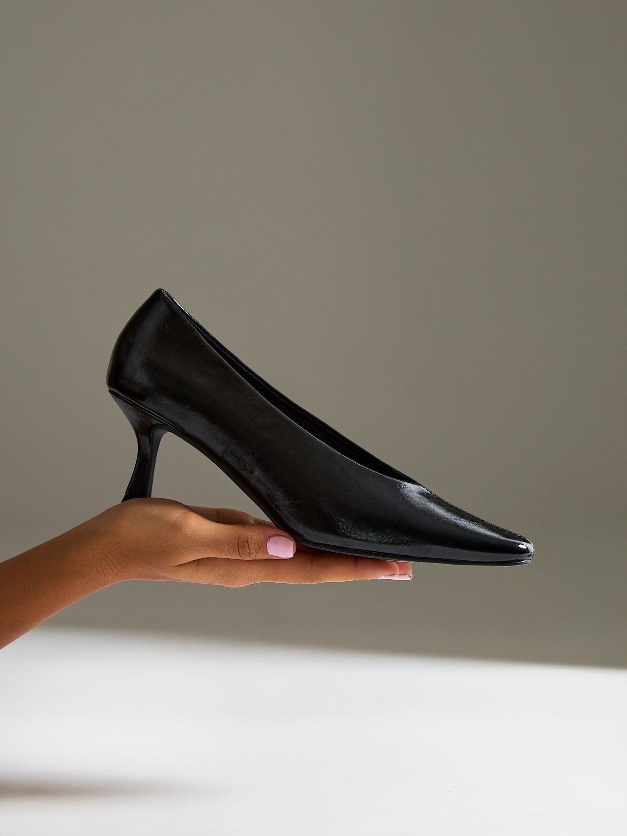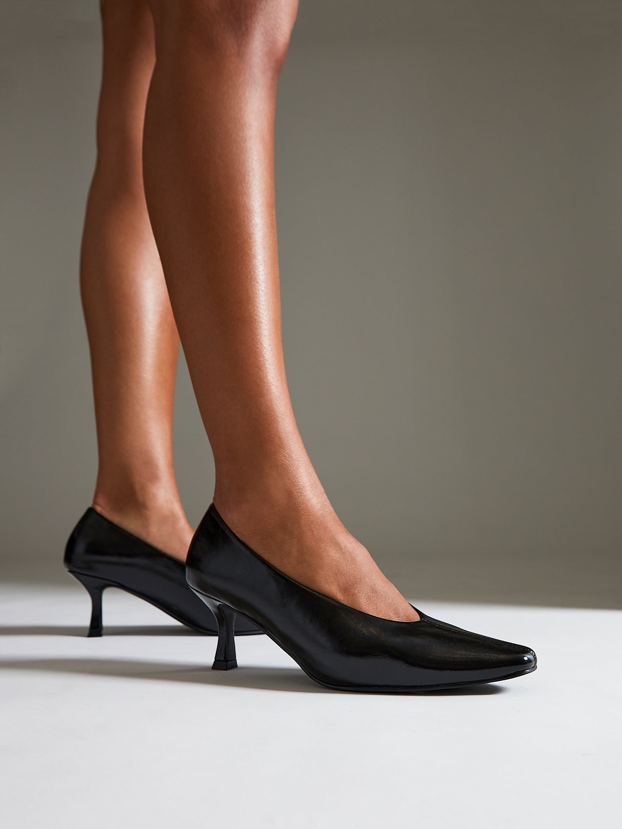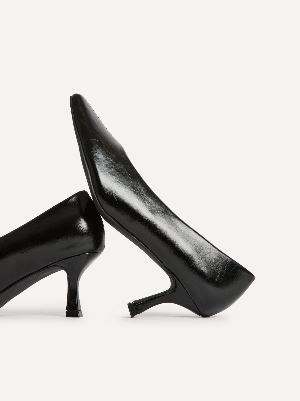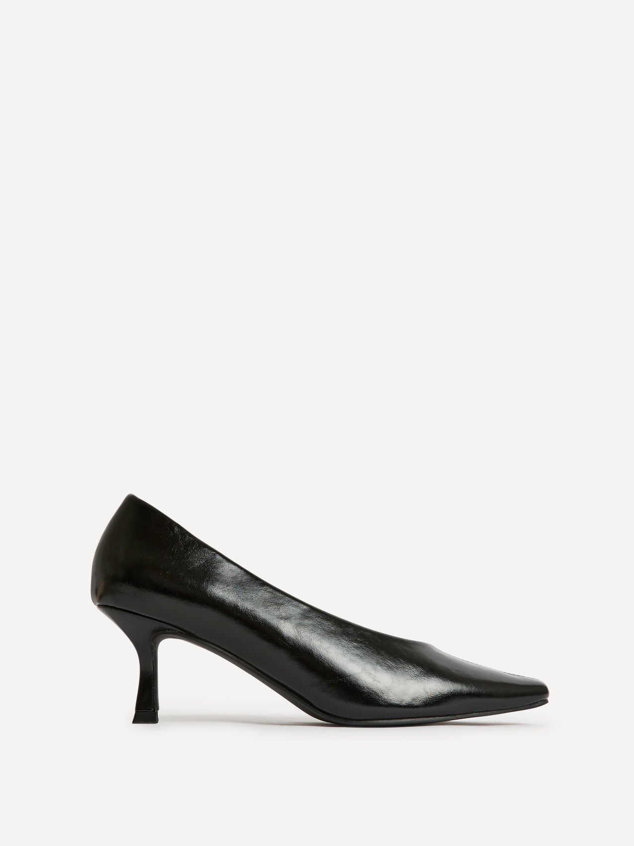 Delaney Black Faux Leather Square Toe Court Heels