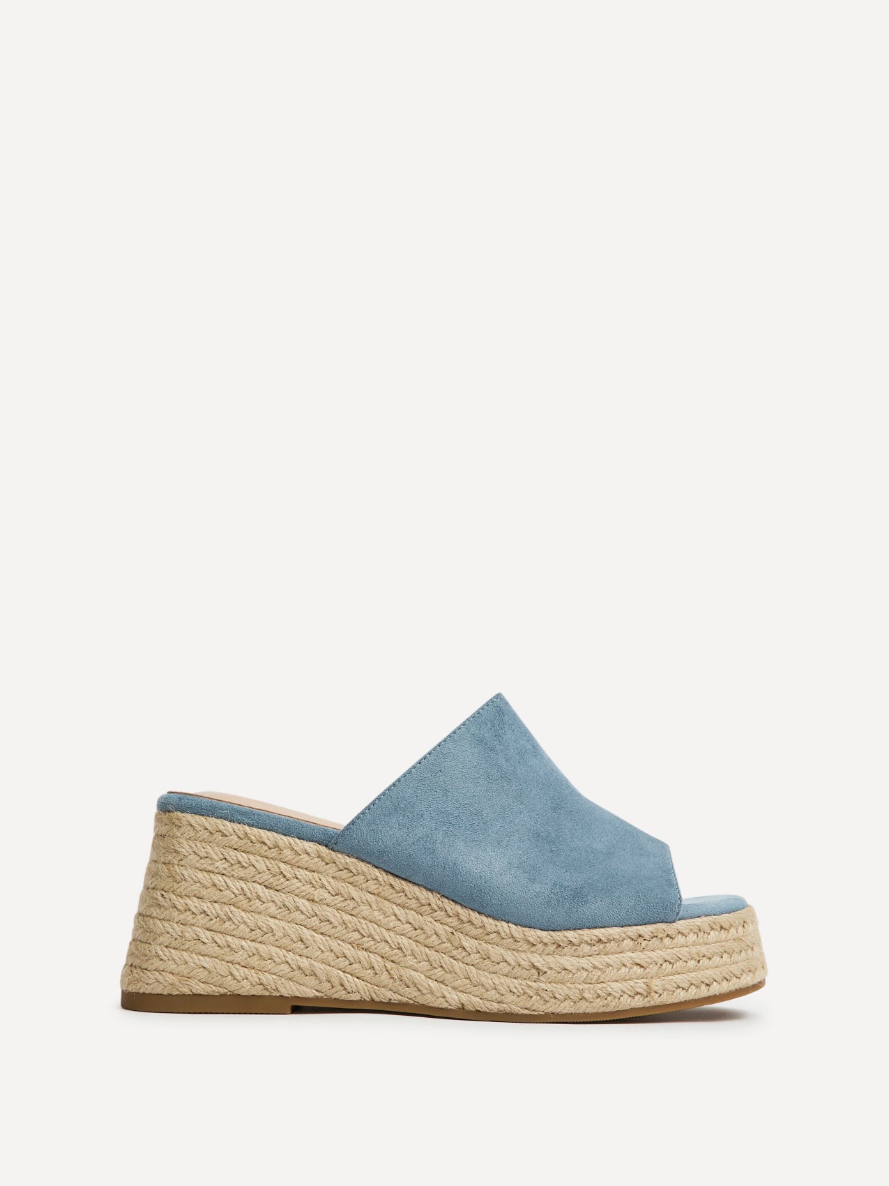 Espresso Pale Blue Faux Suede Espadrille Mule Wedges