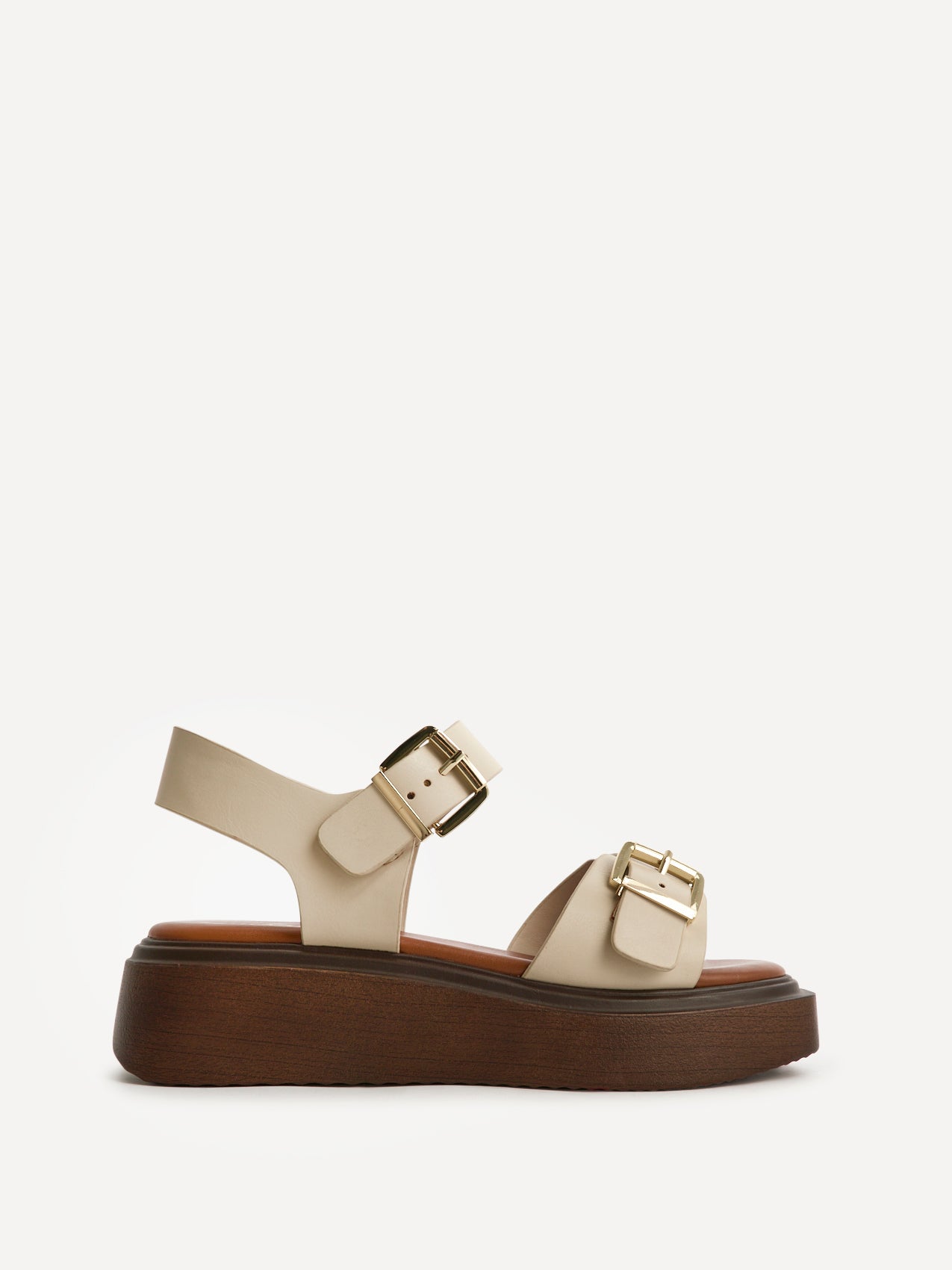 Step up your style with our Source wide fit flatform sandals. Designed with double buckle straps and a chunky flatform sole, these sandals blend style and comfort effortlessly. The cushioned insole offers all day support, making them perfect for everyday wear. Heel Height: 4cm