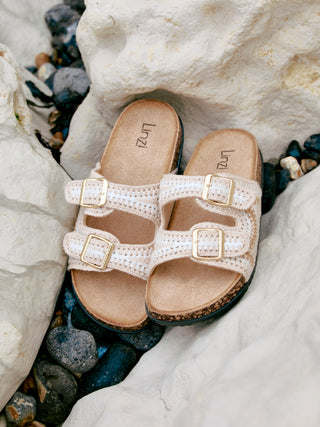 Beige Woven Double Buckle Footbed Sandal