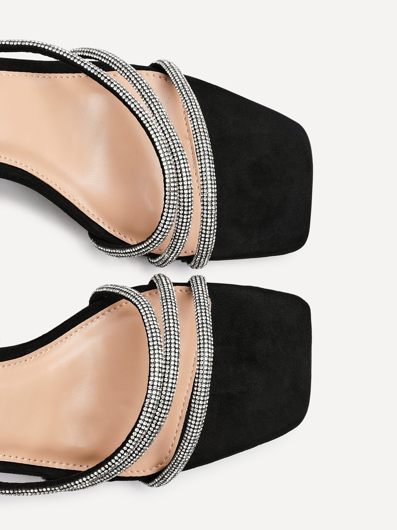 Turn heads in our Glimmer high heels, designed with a stylish square toe and three sparkling diamante front straps. The perfect pair for any special occasion, they're finished with a slim 8cm block heel and cushioned insole for comfort.