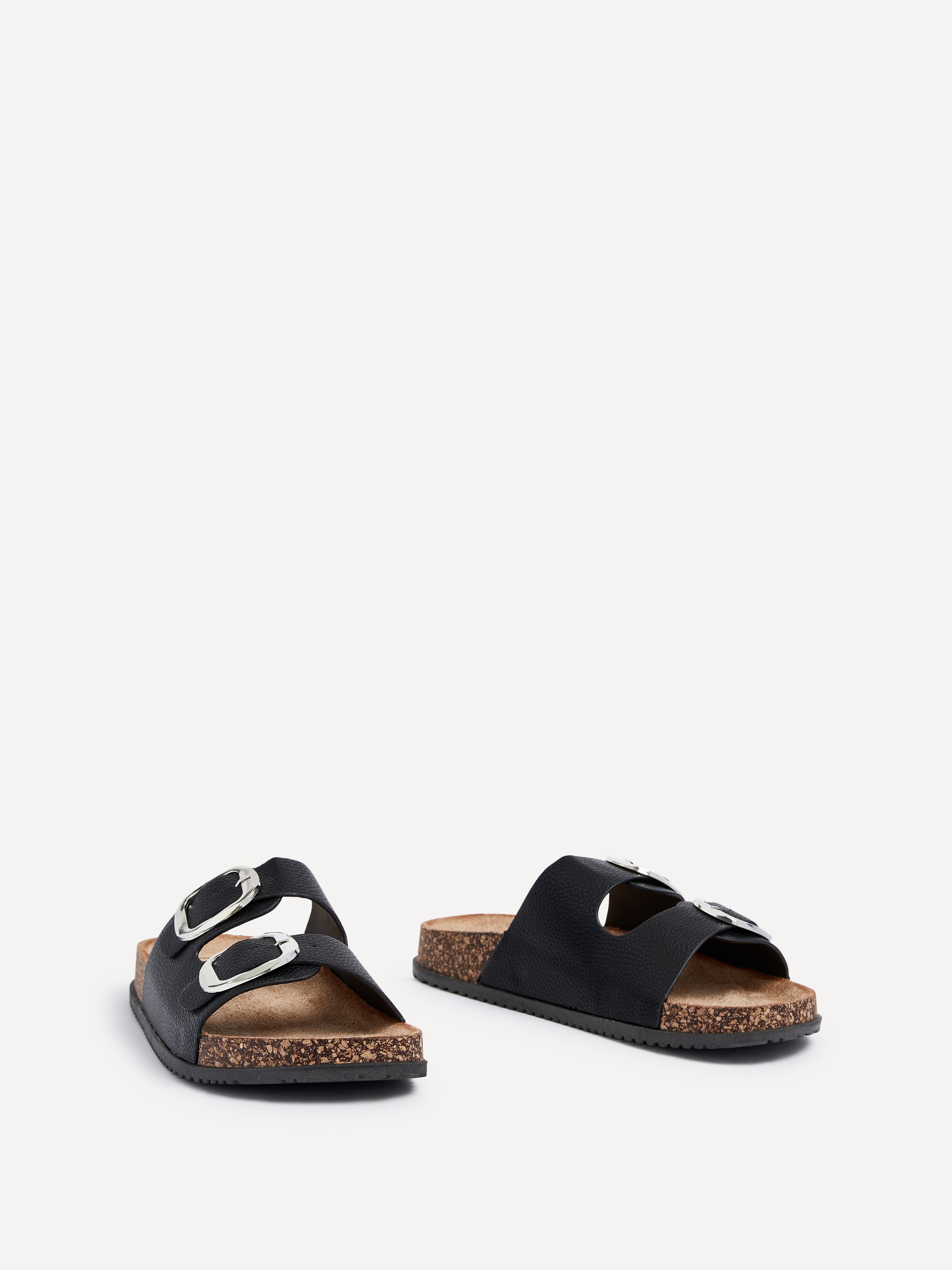 Tatum Black Double Buckle Slider Sandals