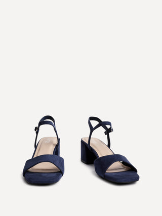 Navy Faux Suede Low Block Heeled Sandals