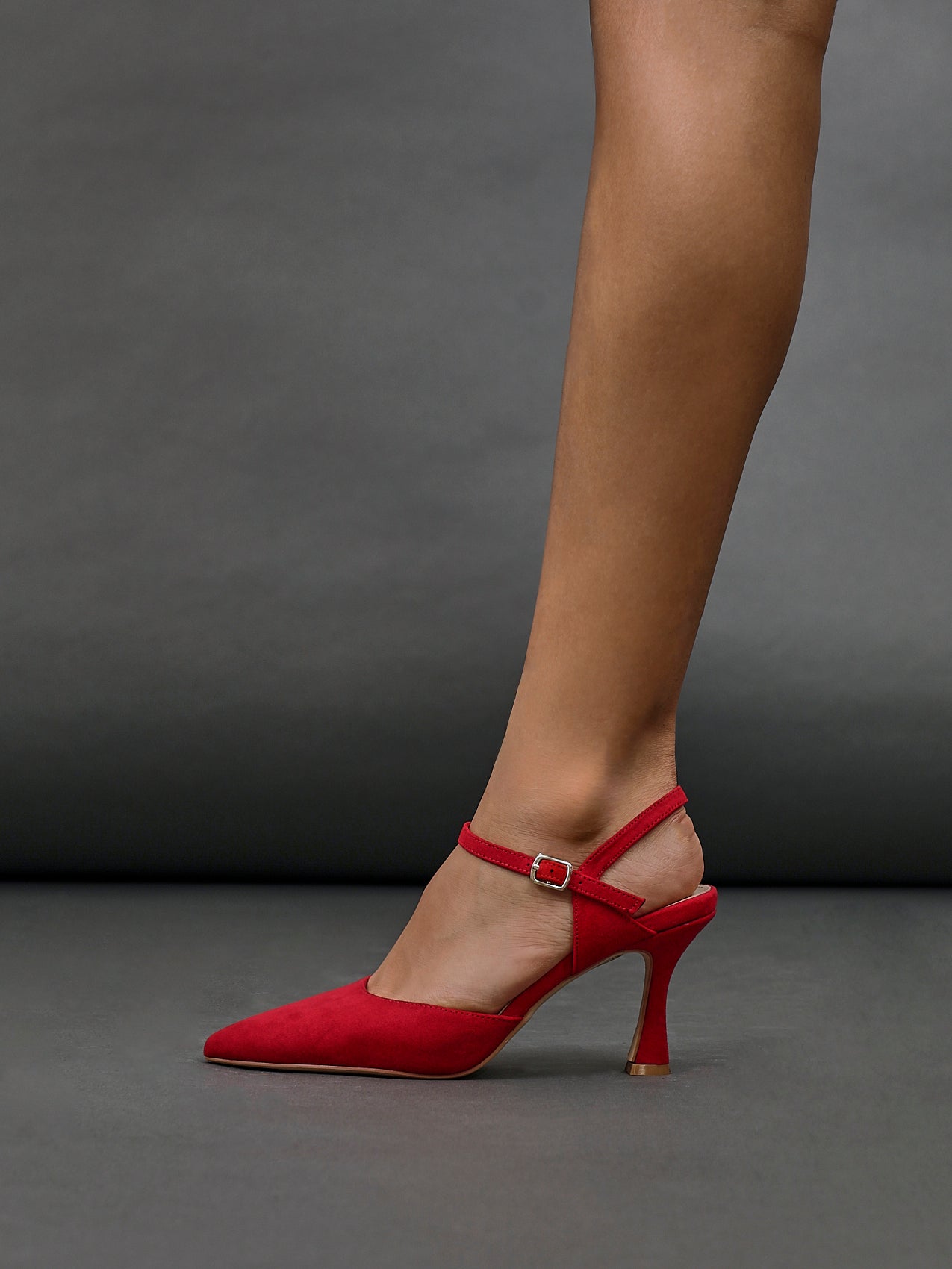 Wide Fit Red Faux Suede Open Back Stiletto Court Heel