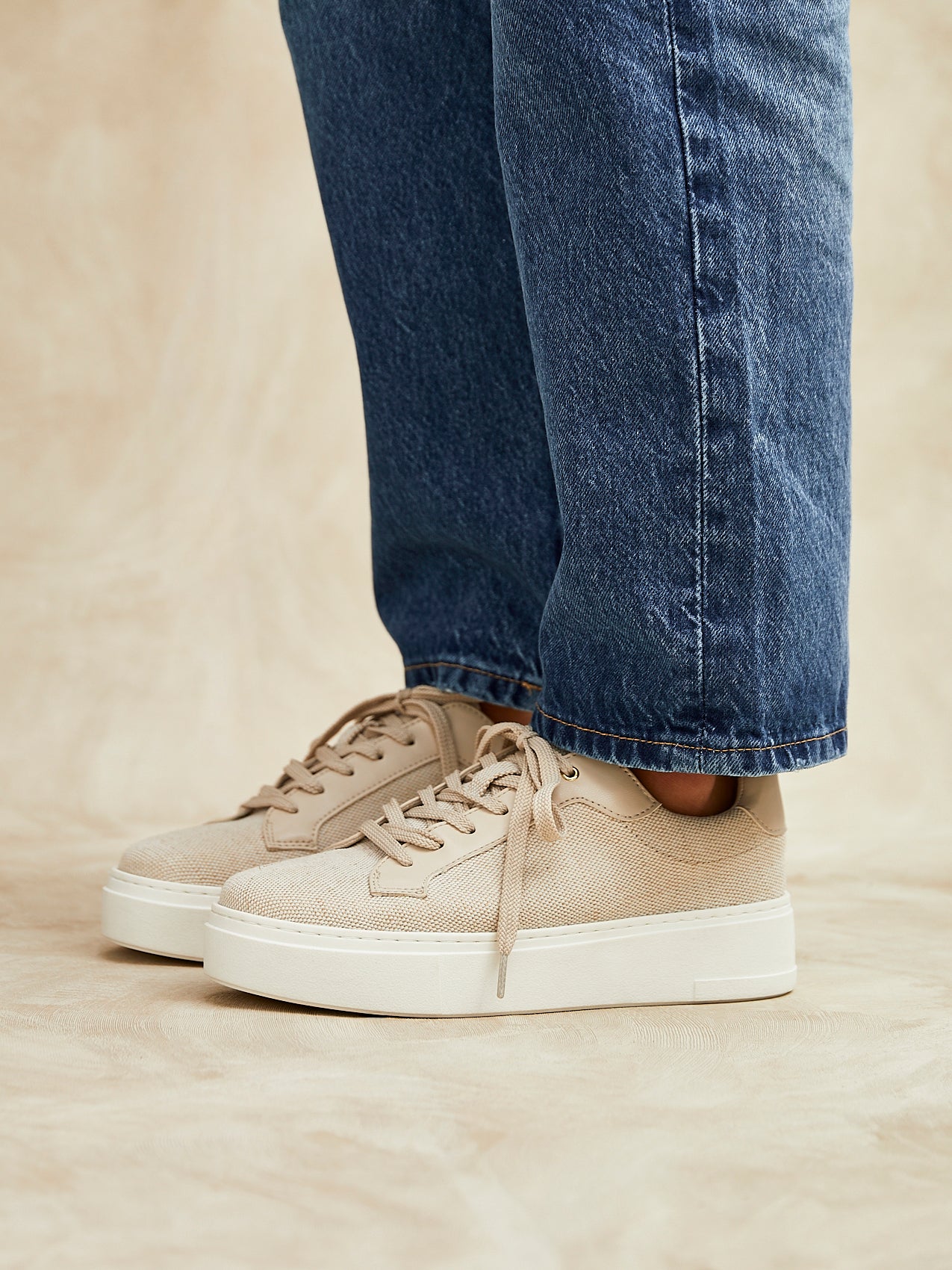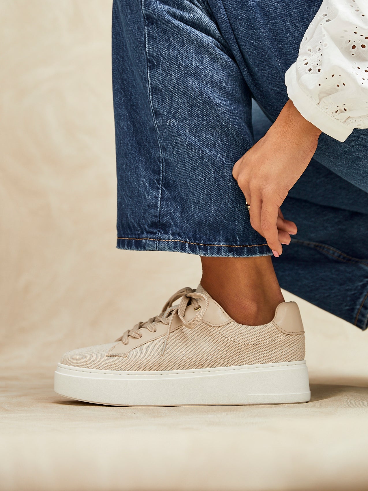 Nude Canvas Lace Up Flatform Trainers