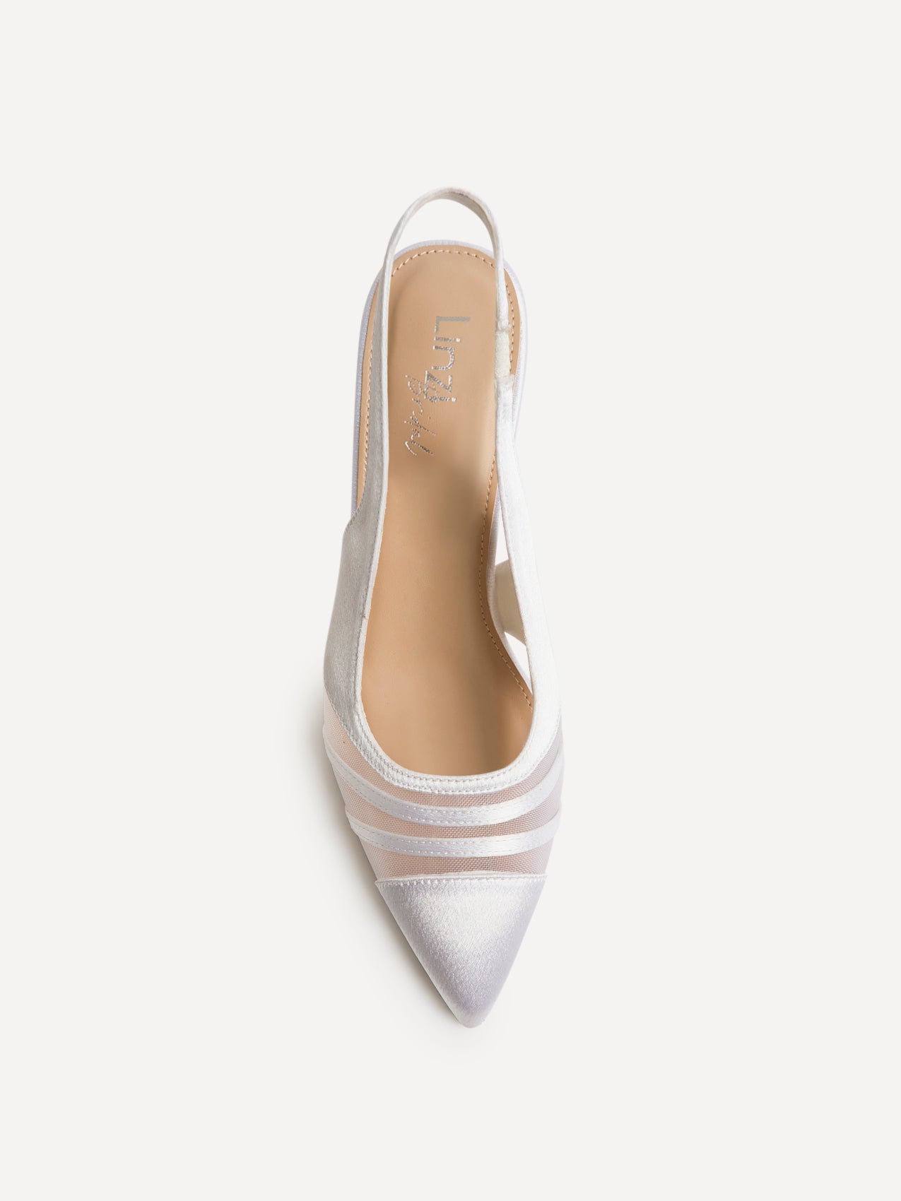 Our Inez sling back court heels make the perfect bridal pair for your special day. The ideal shoes to take you from day to night. The elegant and sophisticated the mesh detailing makes for the ultimate pair for any event that you might be are attending.
