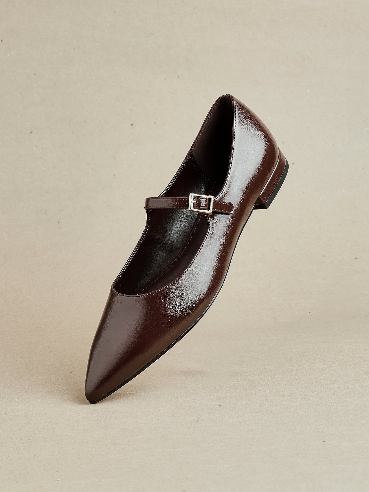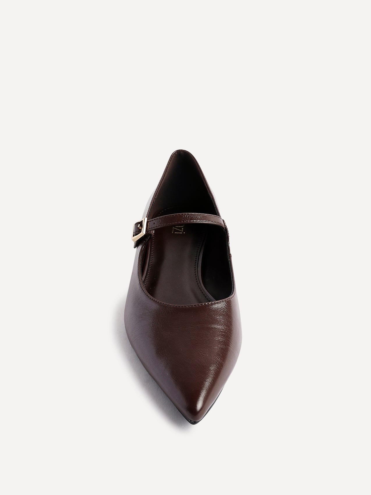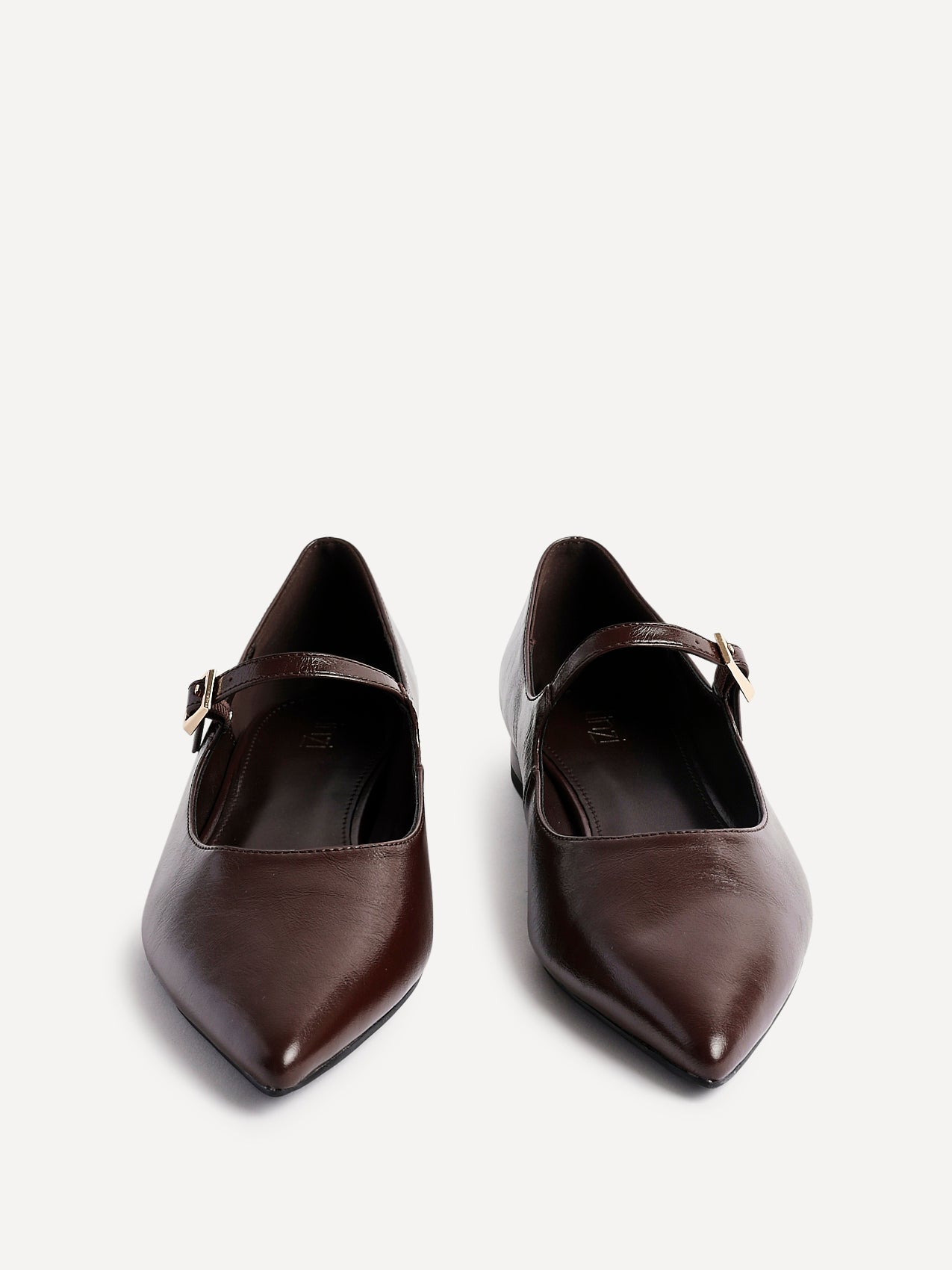 Brown Faux Leather Pointed Toe Mary Jane Flats