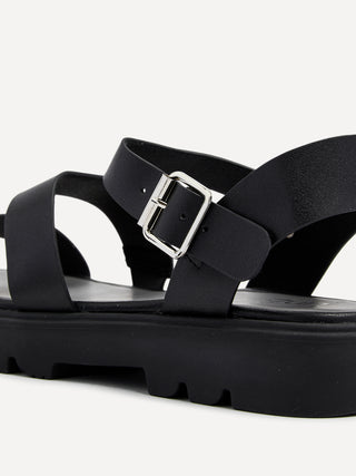 Black Faux Leather Gladiator Style Two Strap Sandal