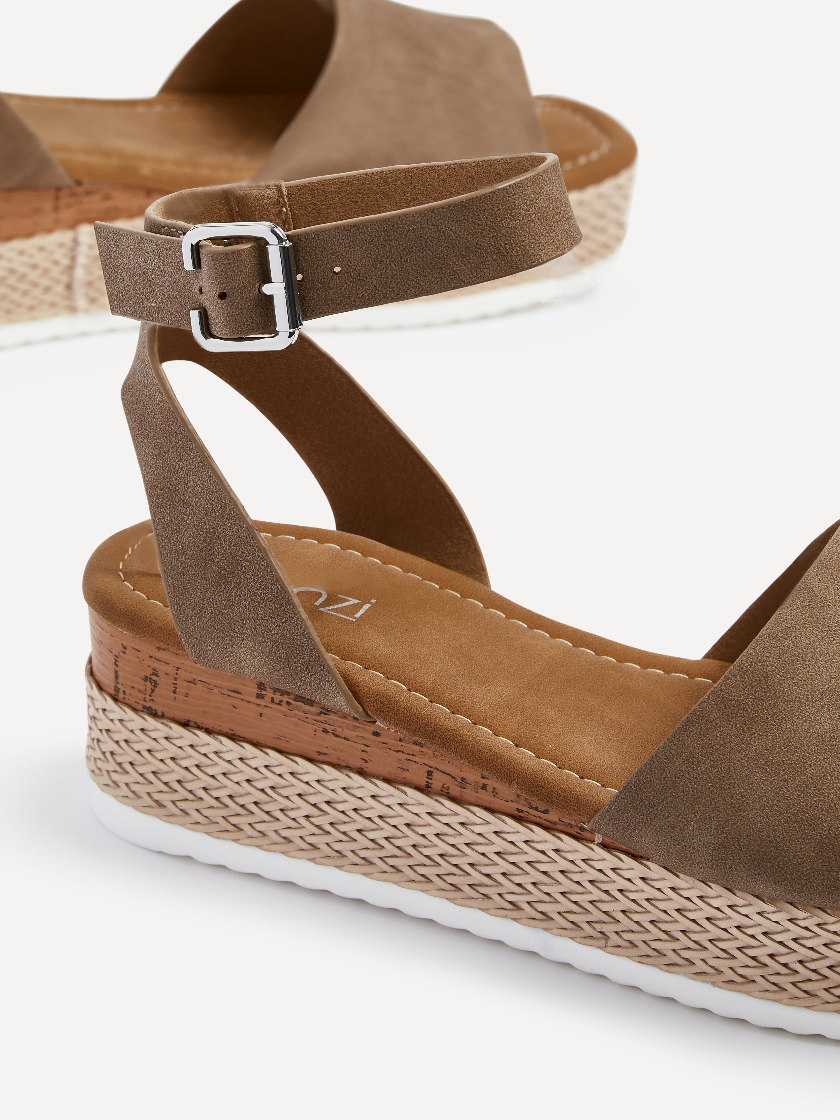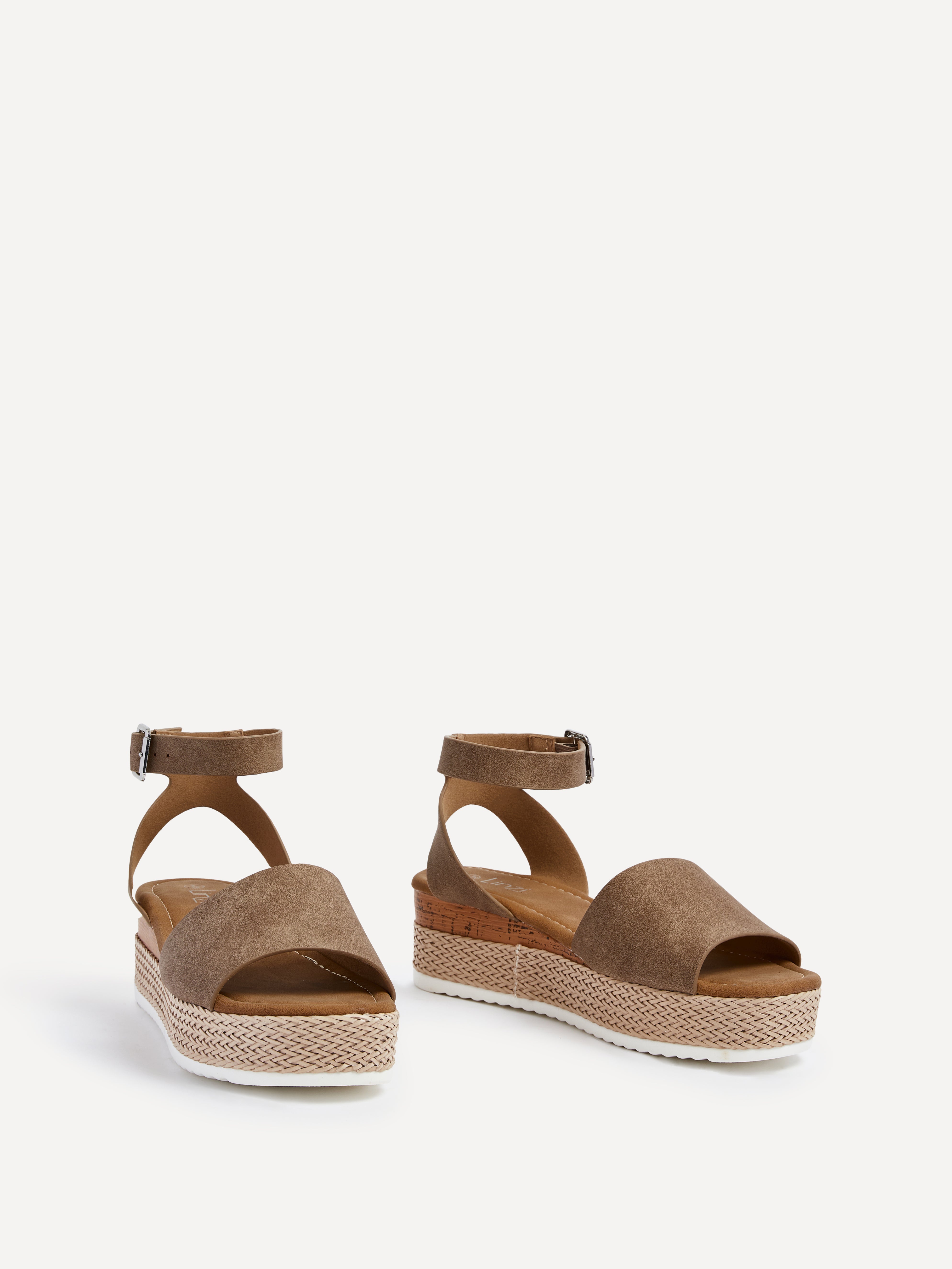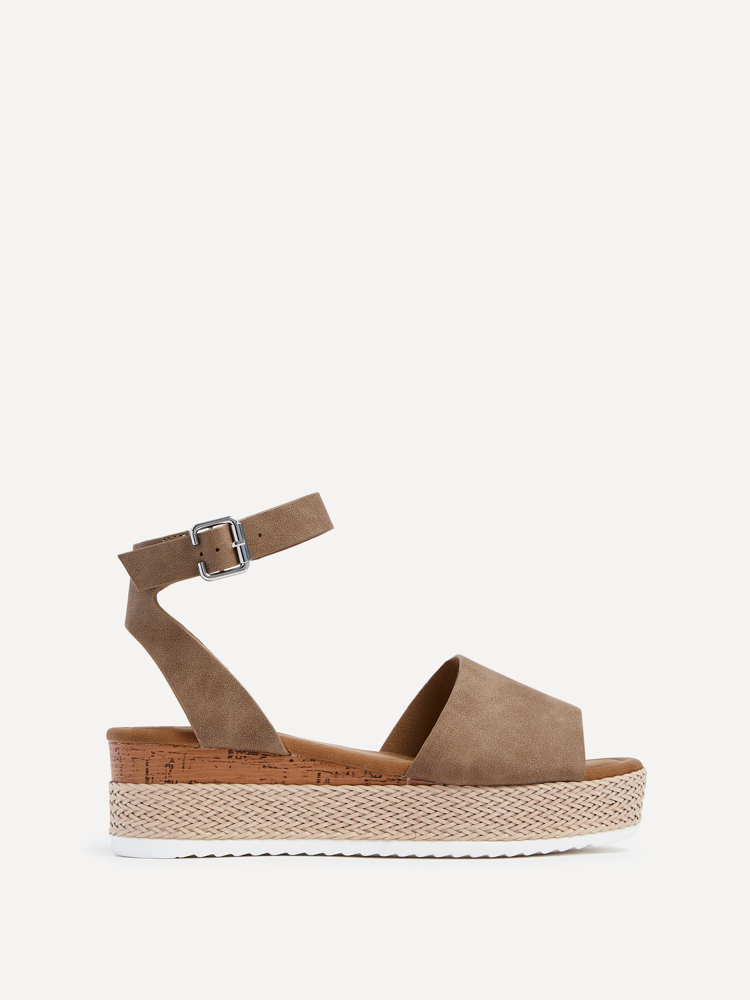 Taupe Faux Nubuck Flatform Two Part Sandal