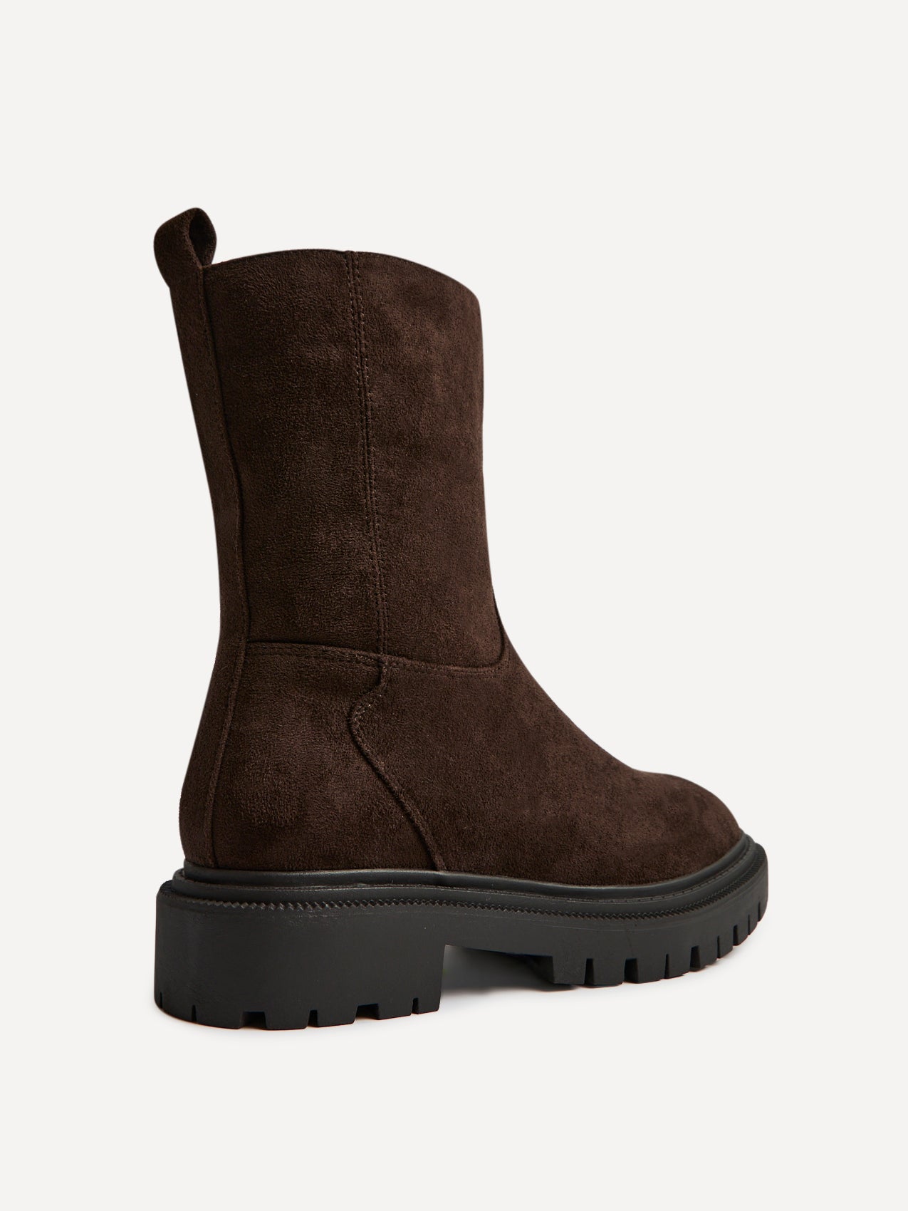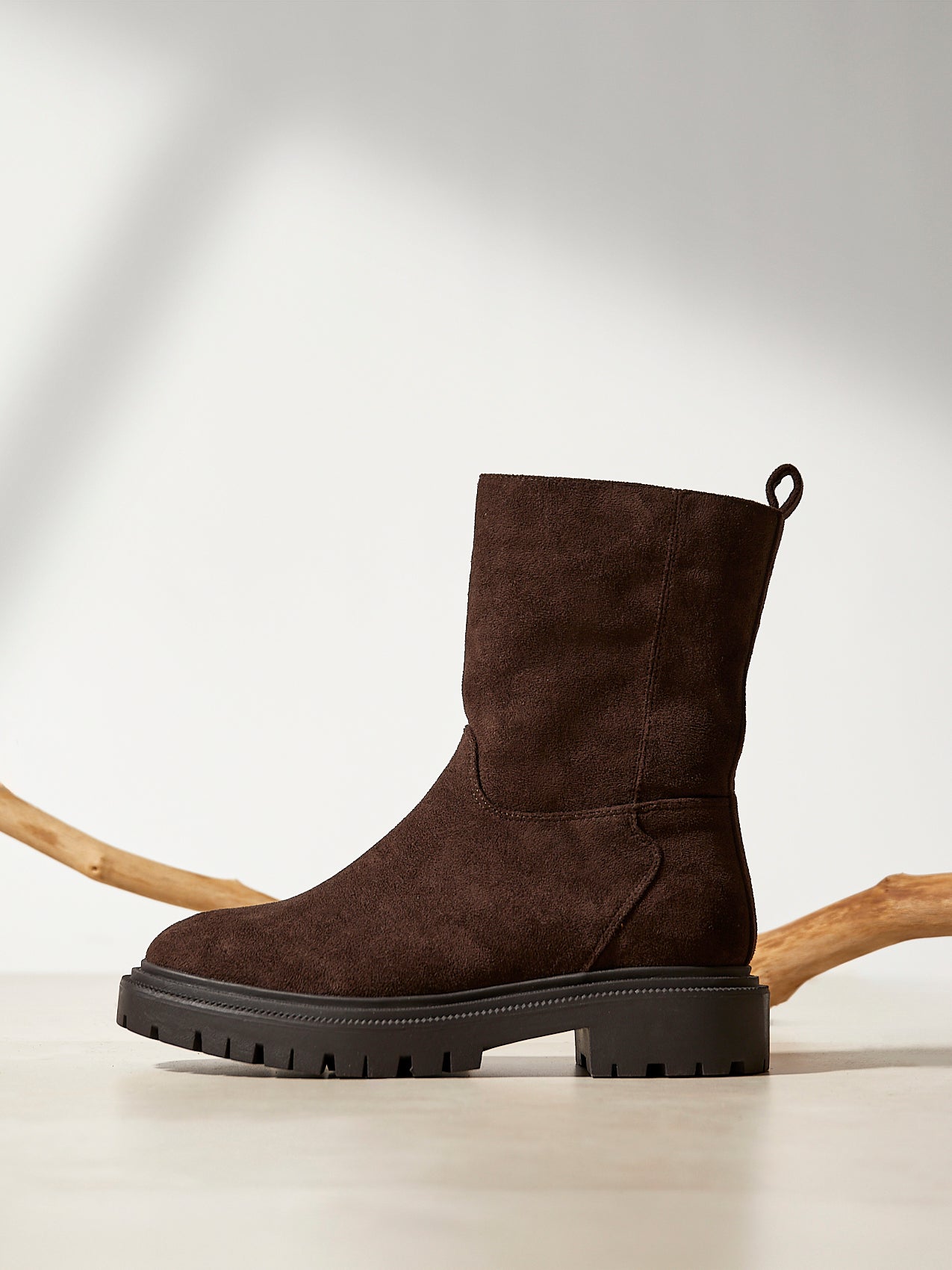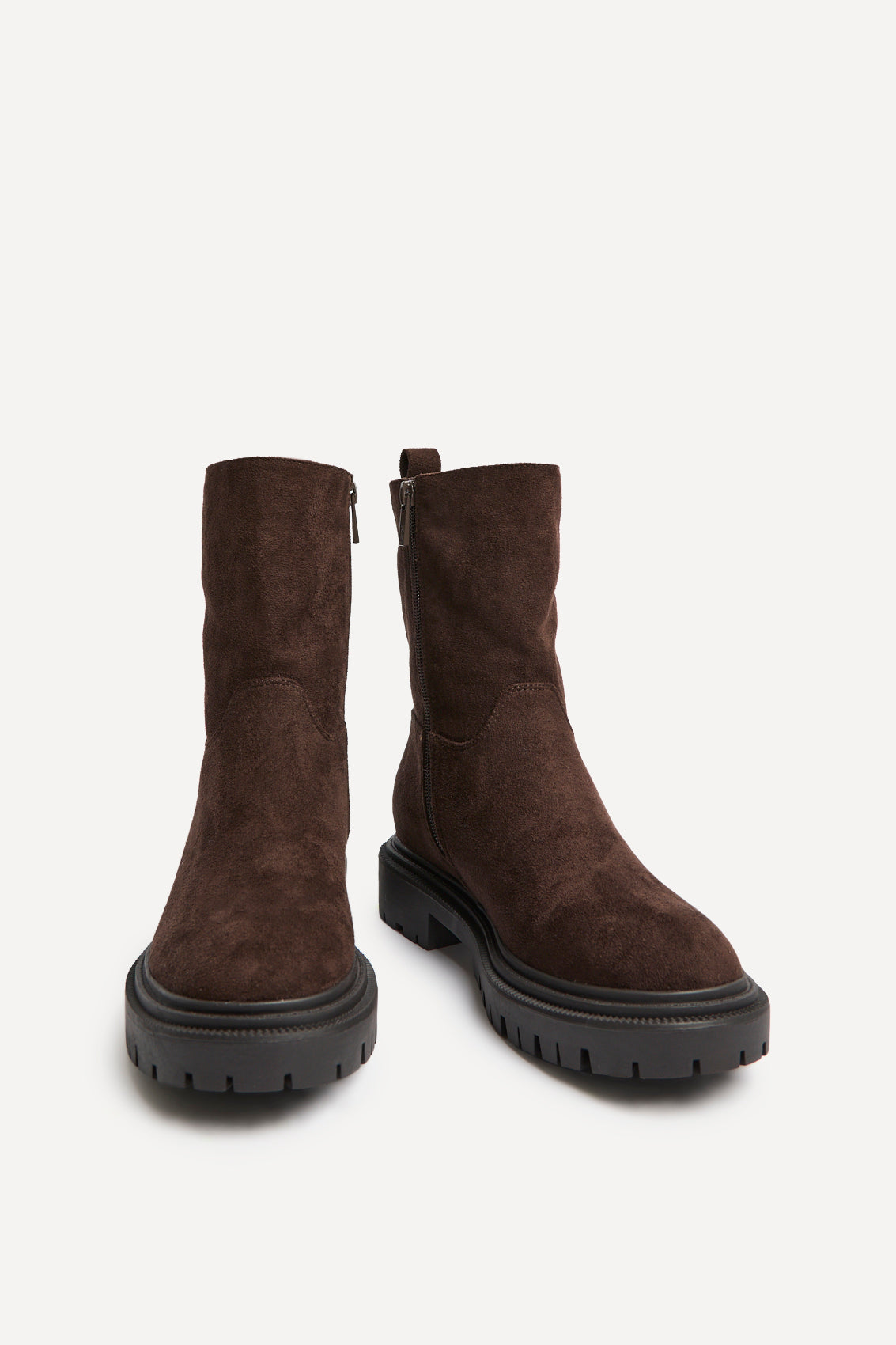 Brown Faux Suede Ankle Boot With Chunky Sole