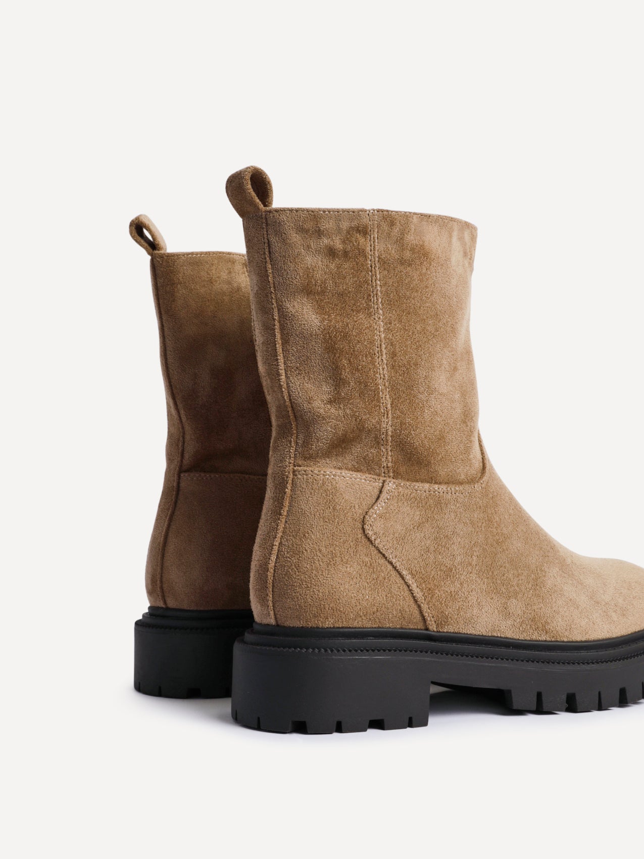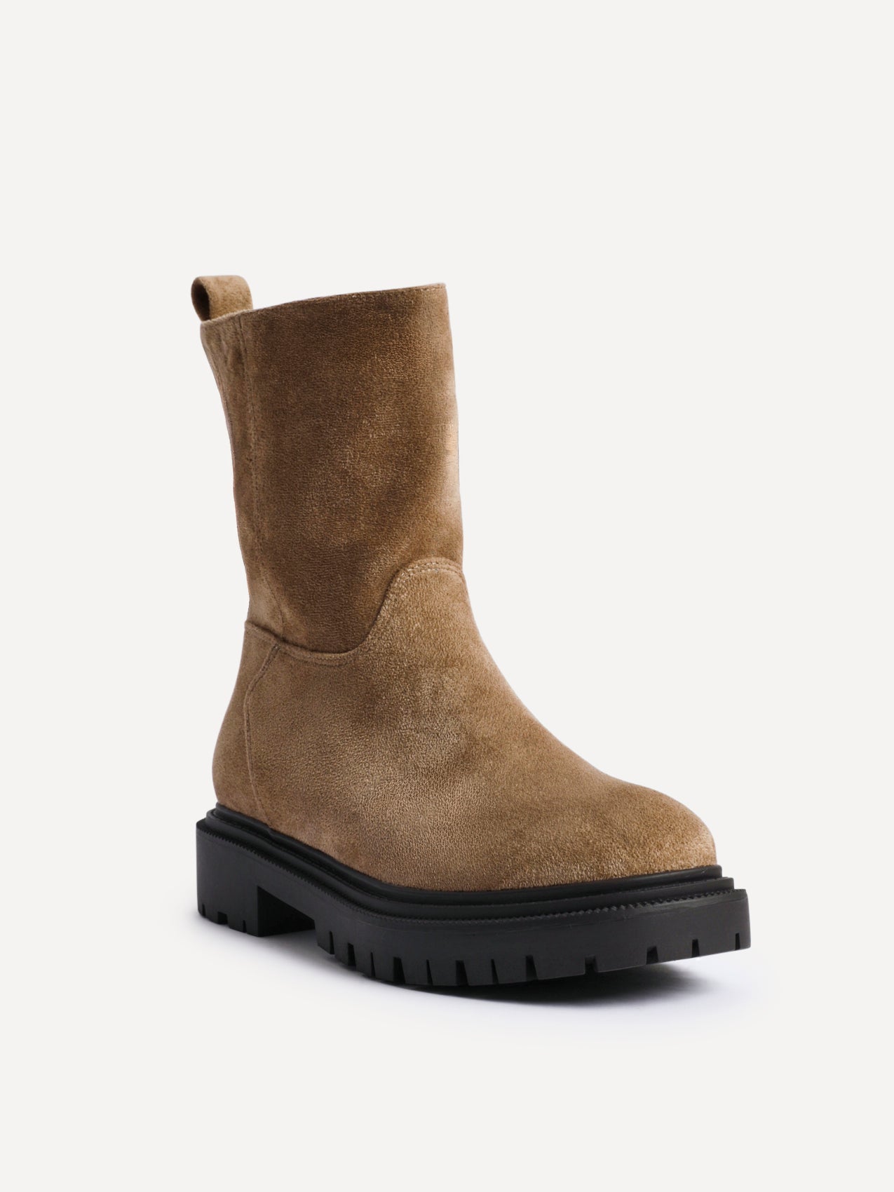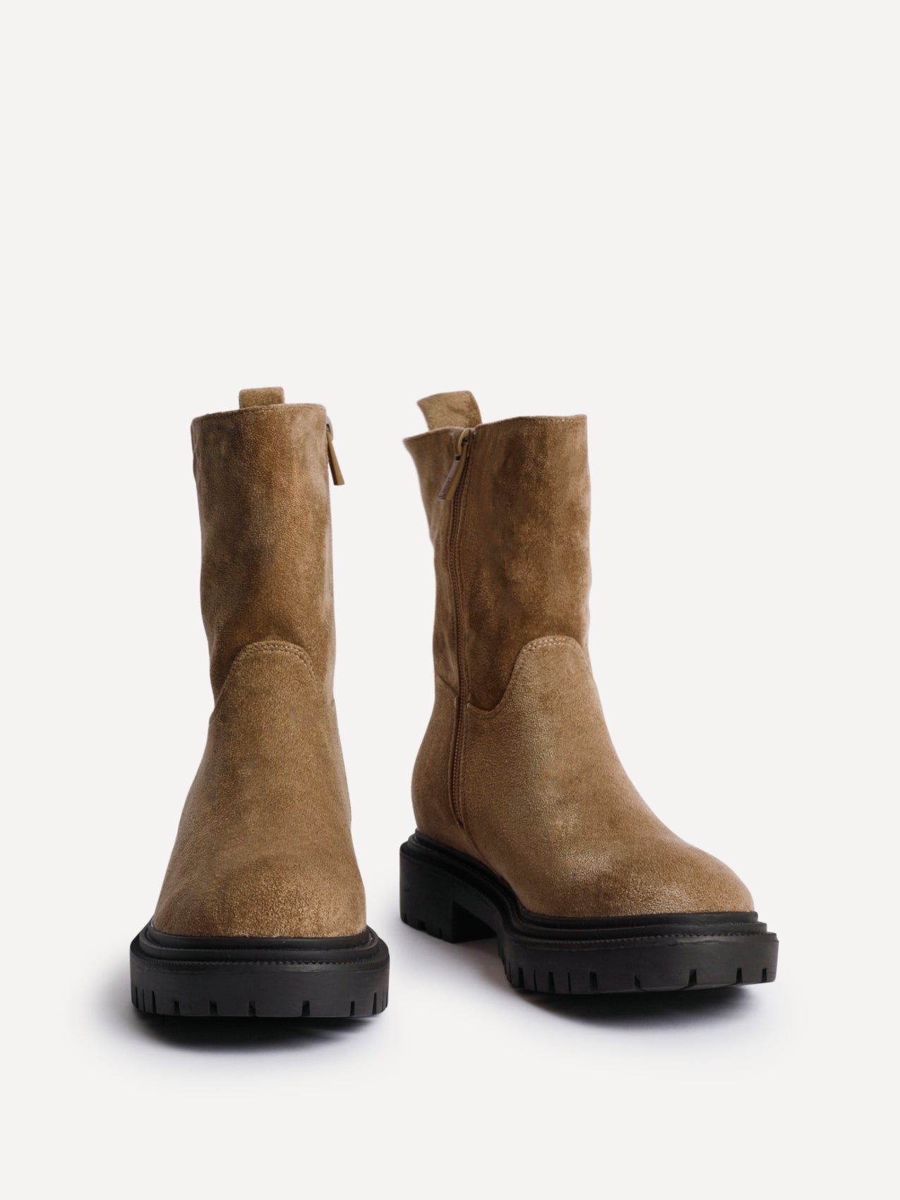 Sand Faux Suede Ankle Boot With Chunky Sole