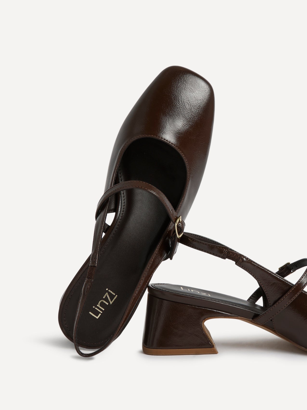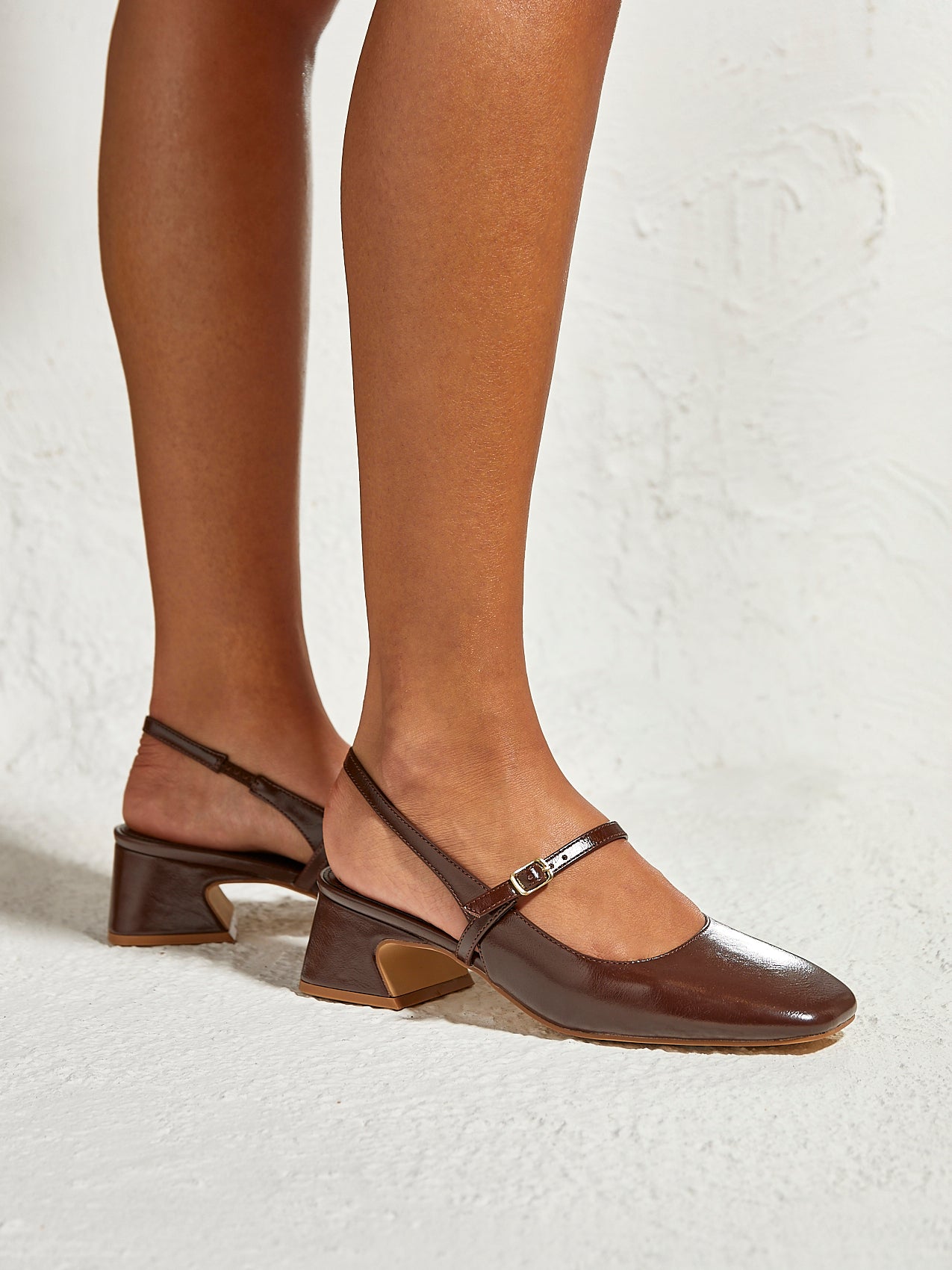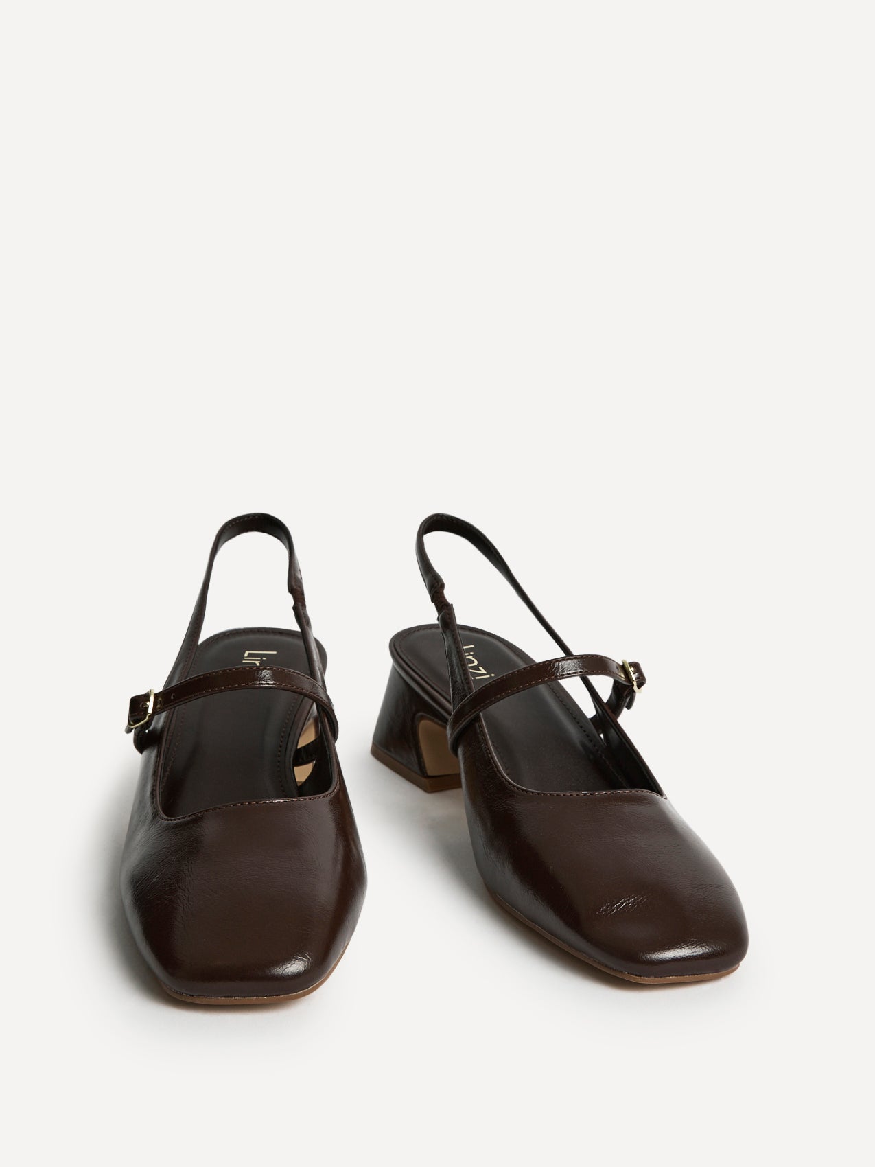 Brown Faux Leather Slingback Courts With Buckle Detail
