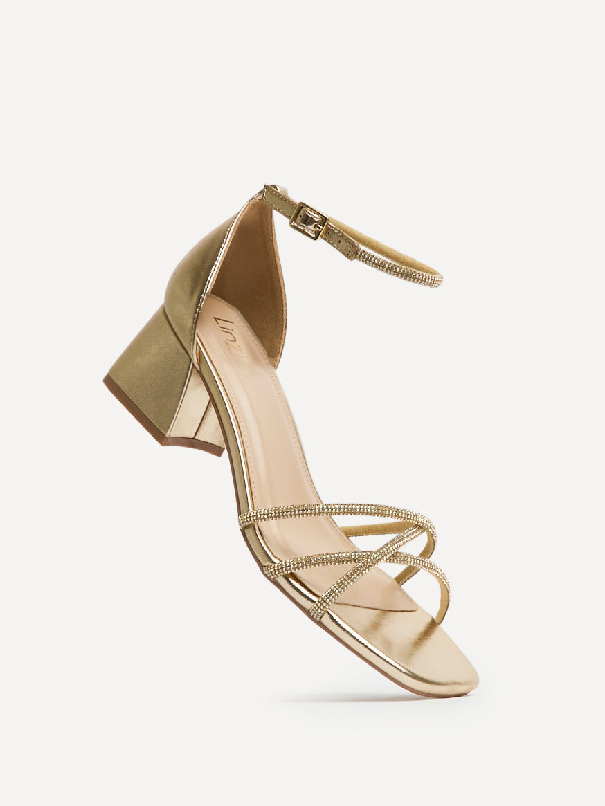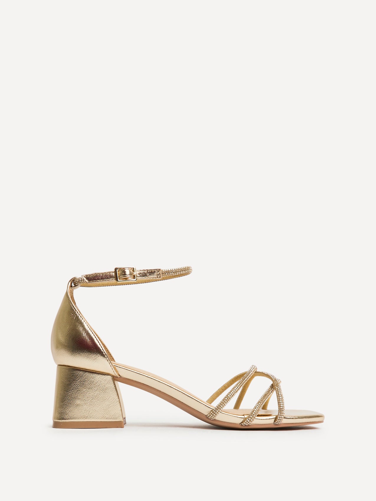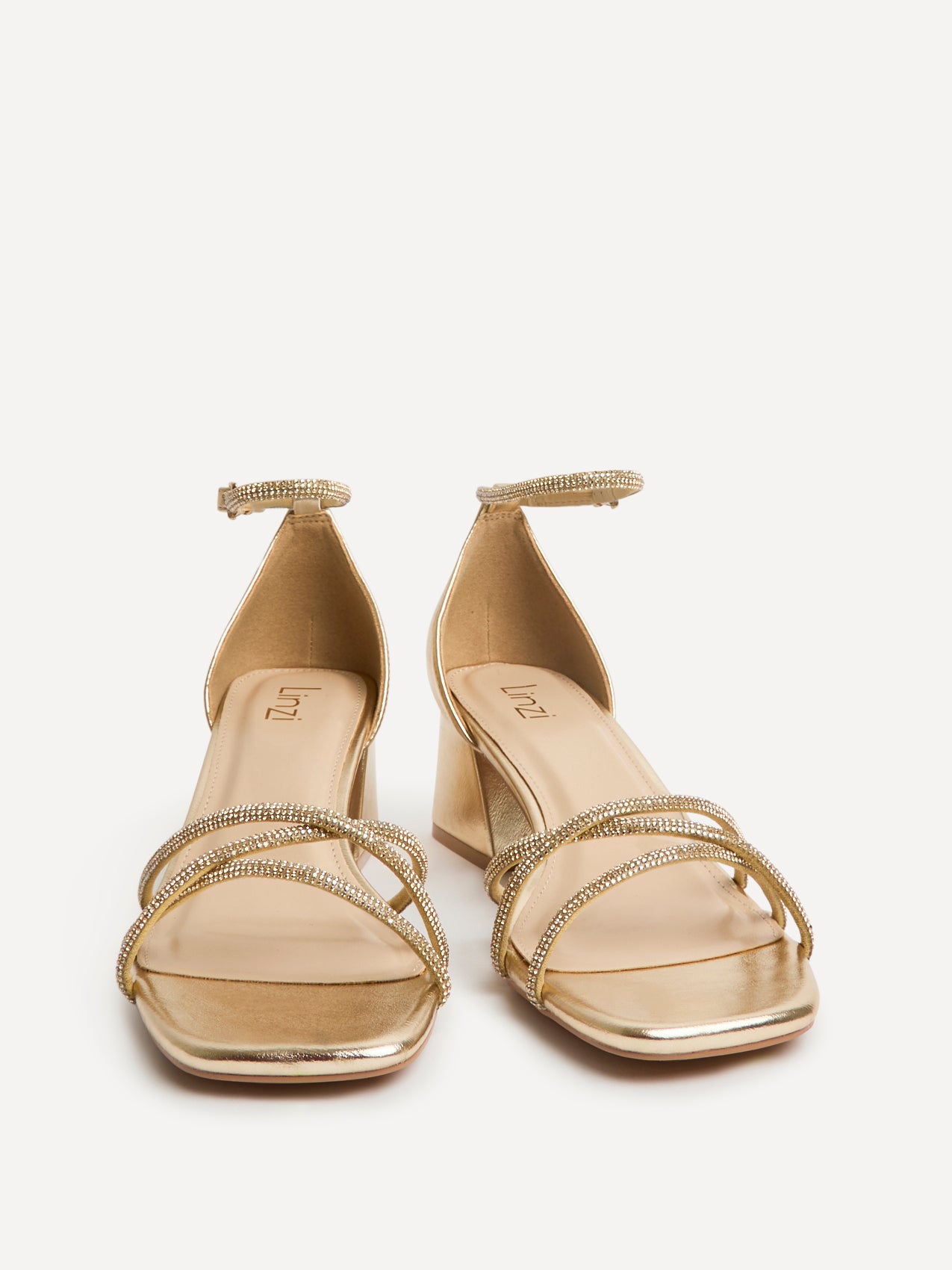 Our Amour closed-back heeled sandals features a low block heel and a sparkling diamante strappy front, for a touch of glamour. A soft cushioned inner sock ensures all day comfort. Perfect for parties and special occasions, it combines elegance, sparkle, and effortless wearability. Heel Height: 5cm