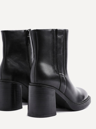 Black Faux Leather Block Heeled Ankle Boot