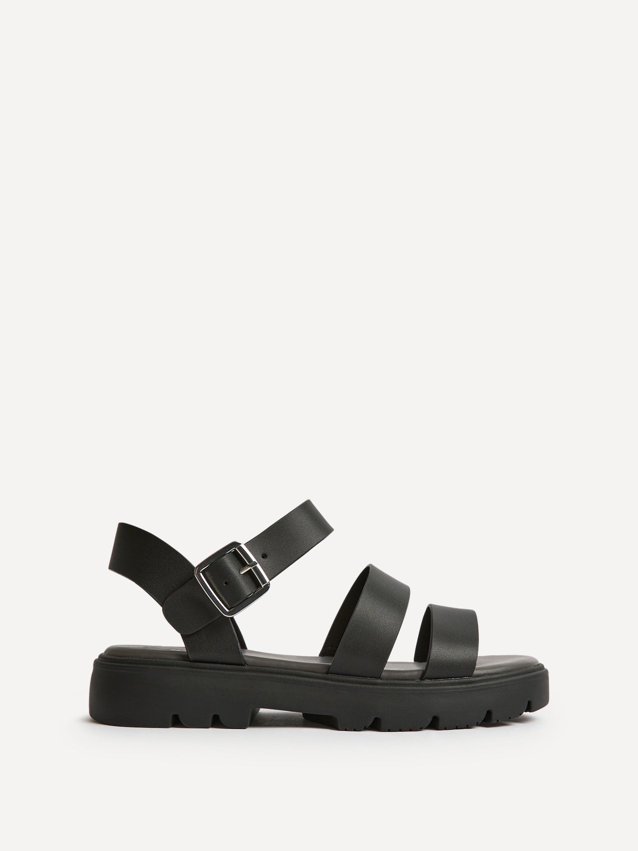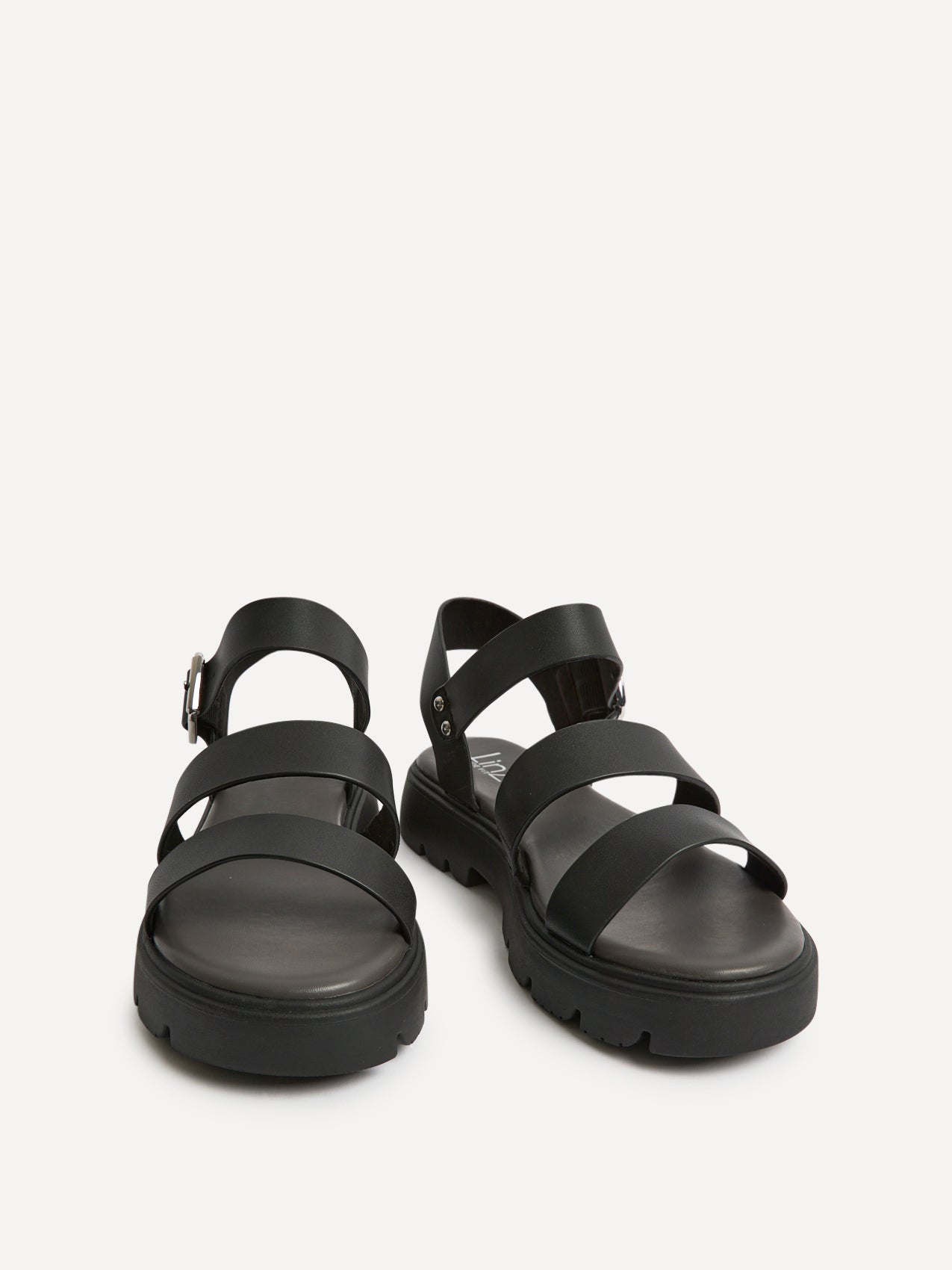 Our wide fit Tayla sandals feature a chunky sole for added stability and a contemporary look. The double front strap not only ensures a secure fit but also adds a modern and stylish element to your footwear. Their extra padded insock ensures all day wear!