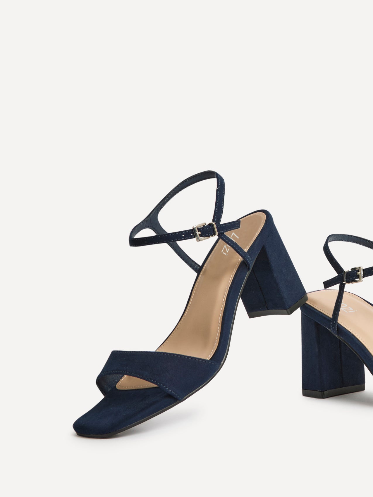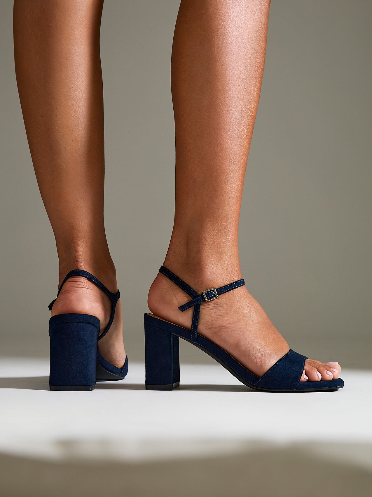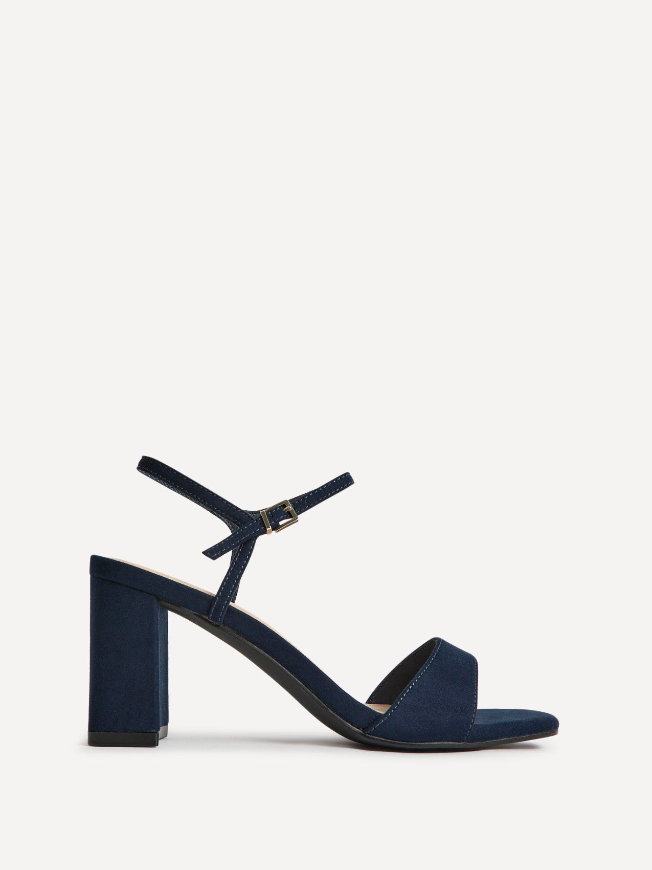 Navy Faux Suede Barely There Block Heel Sandals