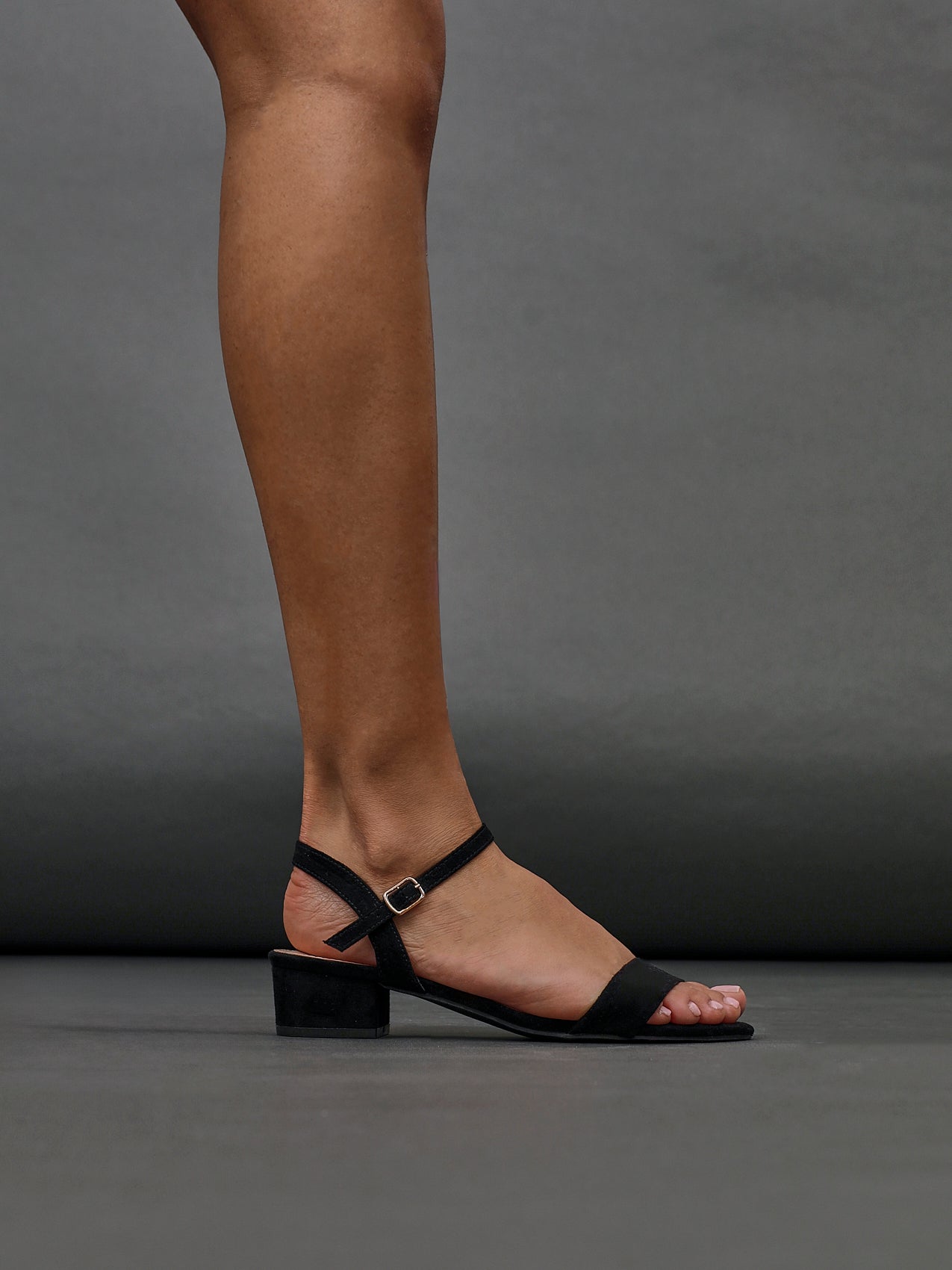 Black Faux Suede Barely There Low Block Heeled Sandal
