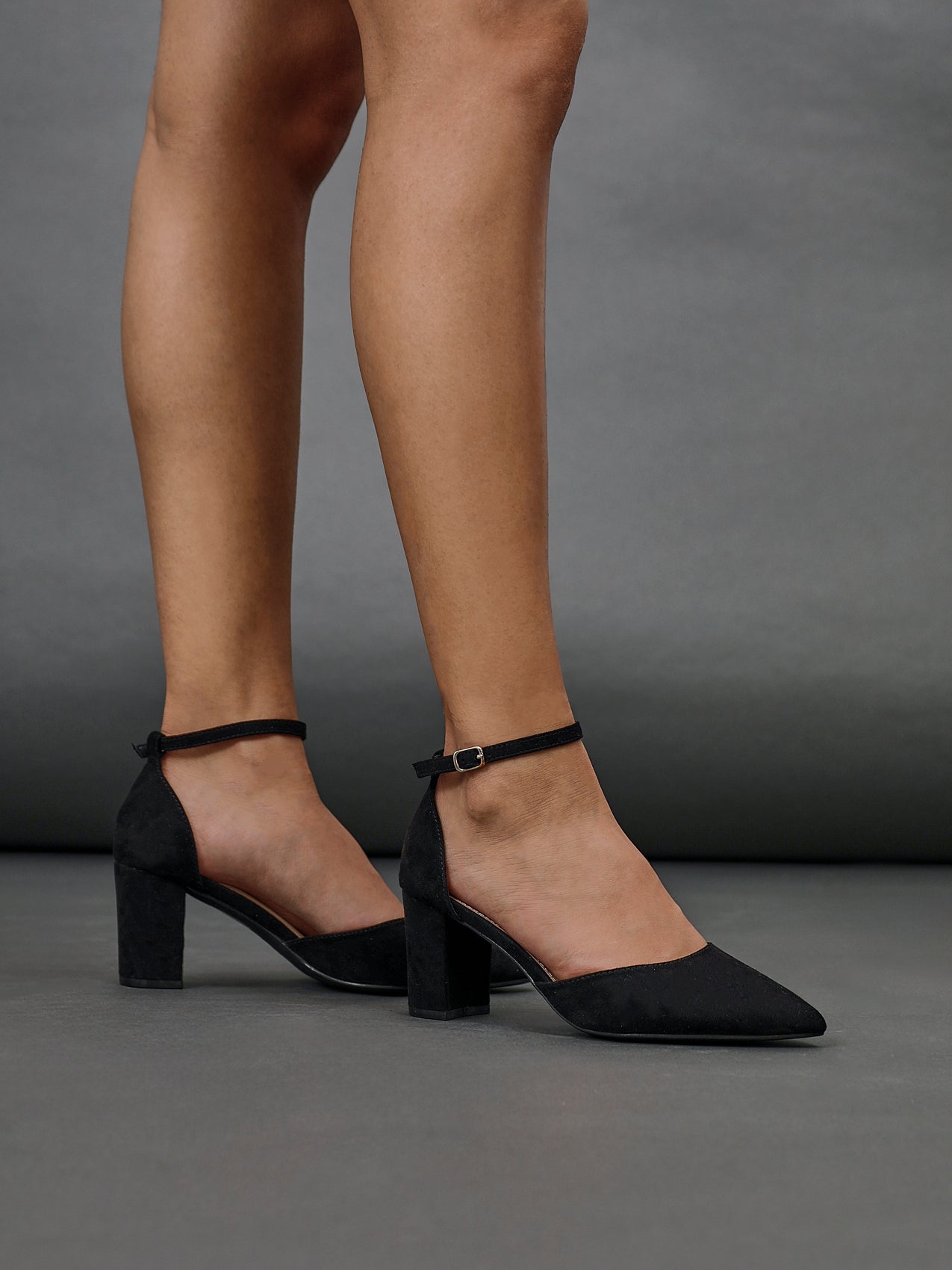 Wide Fit Black Faux Suede Court Shoe With Block Heel