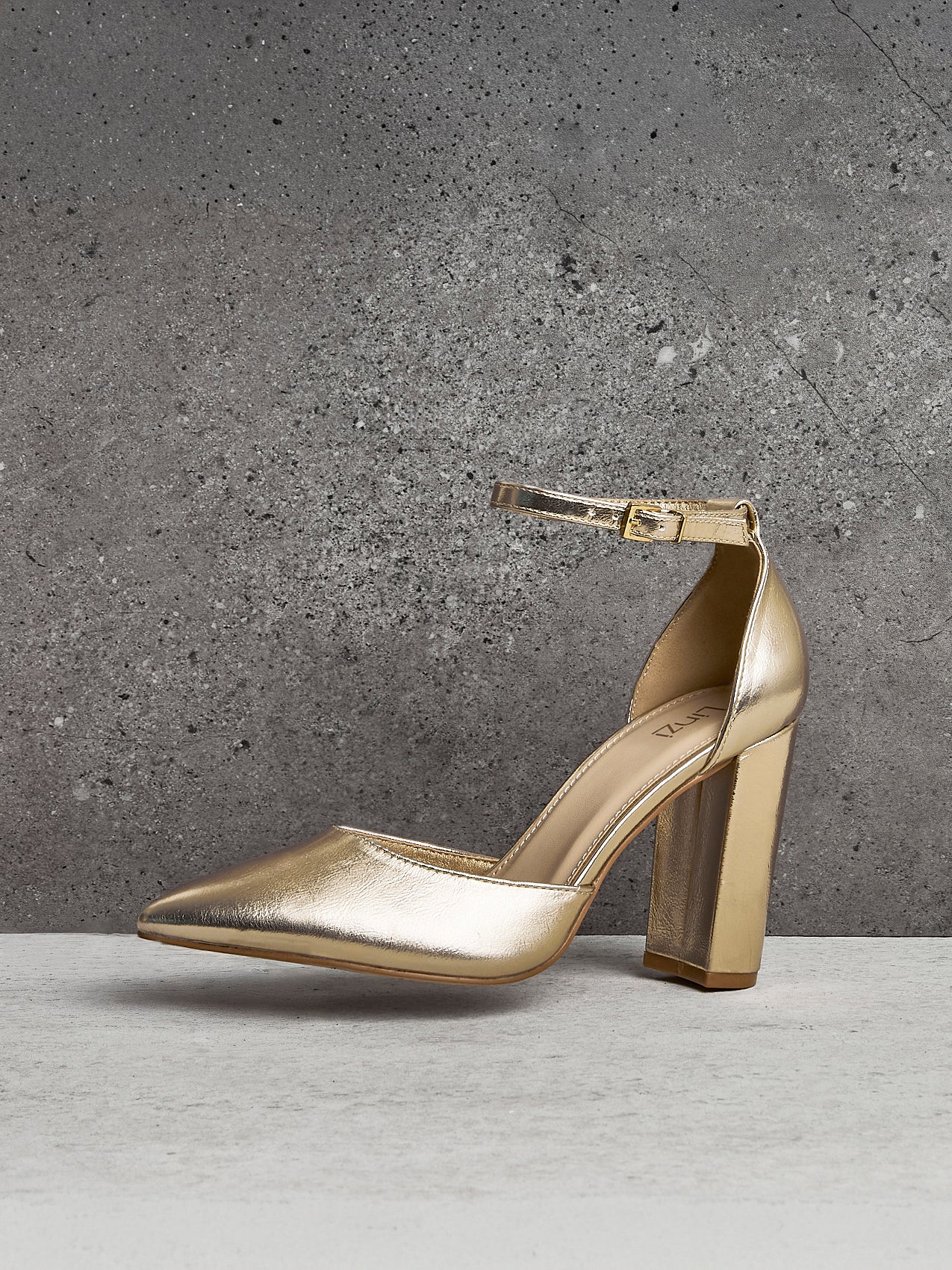 Gold Faux Leather Block Heeled Court Shoe