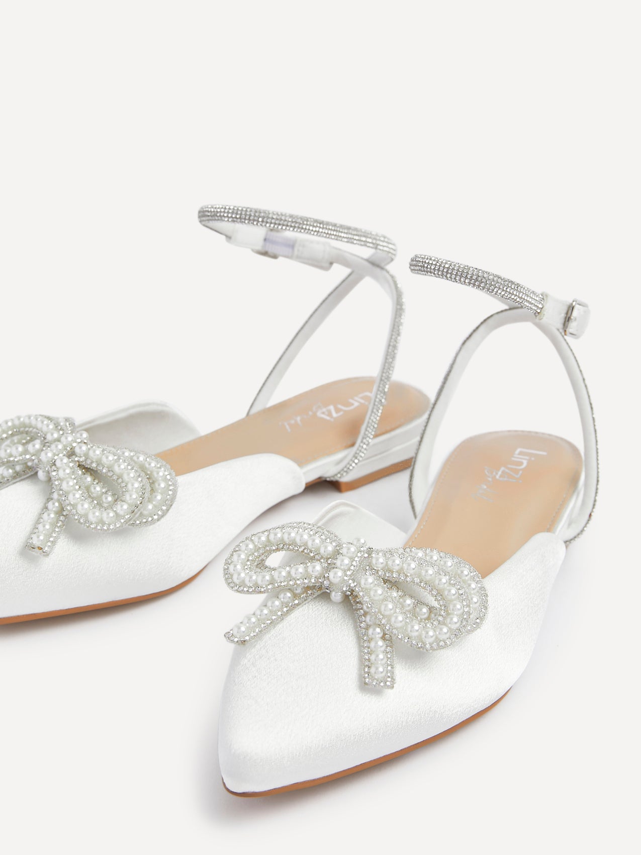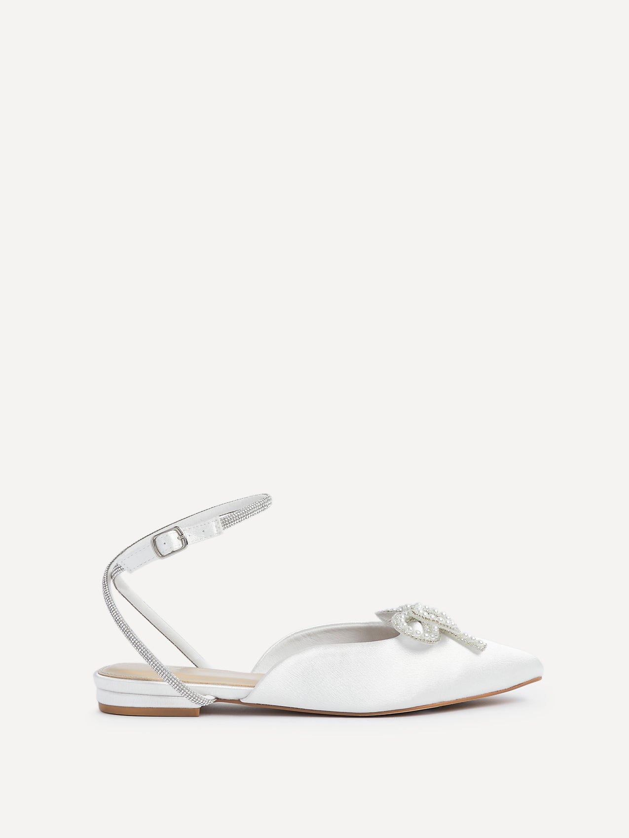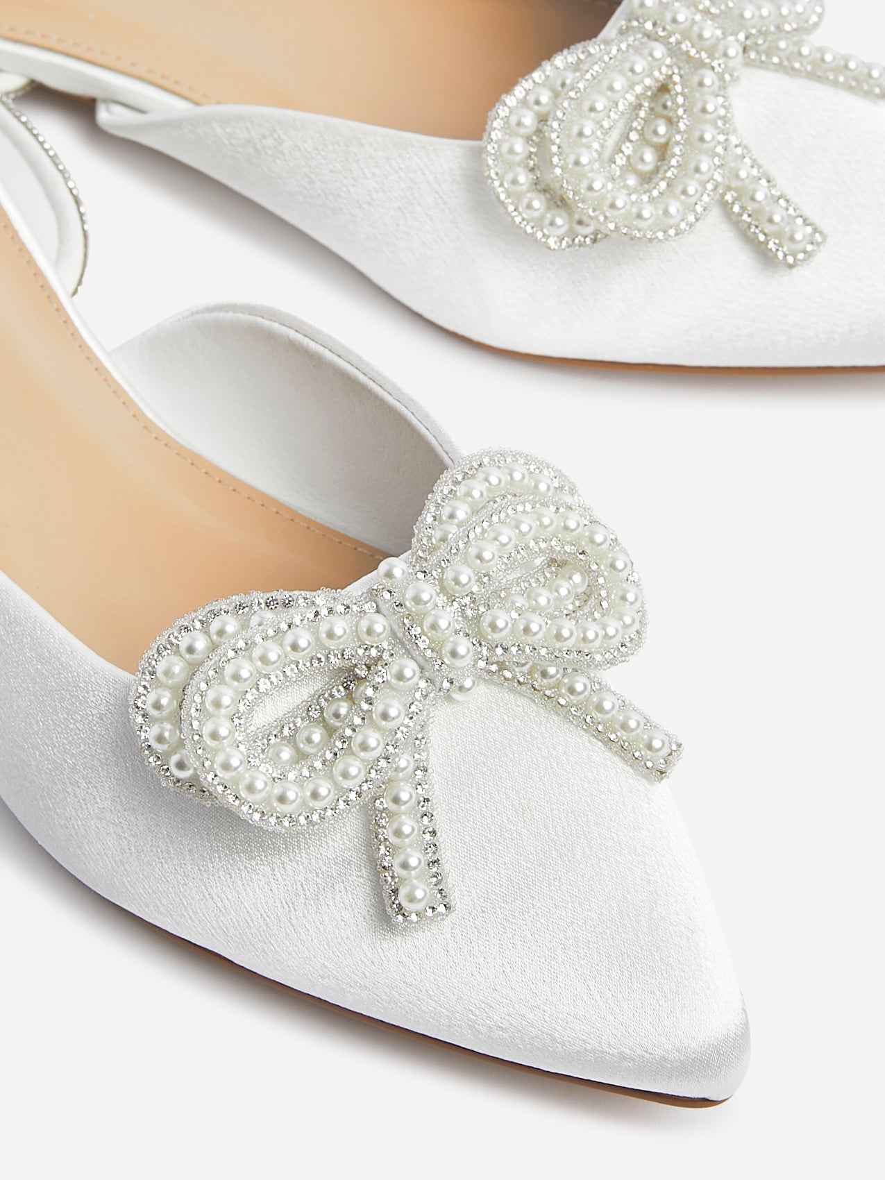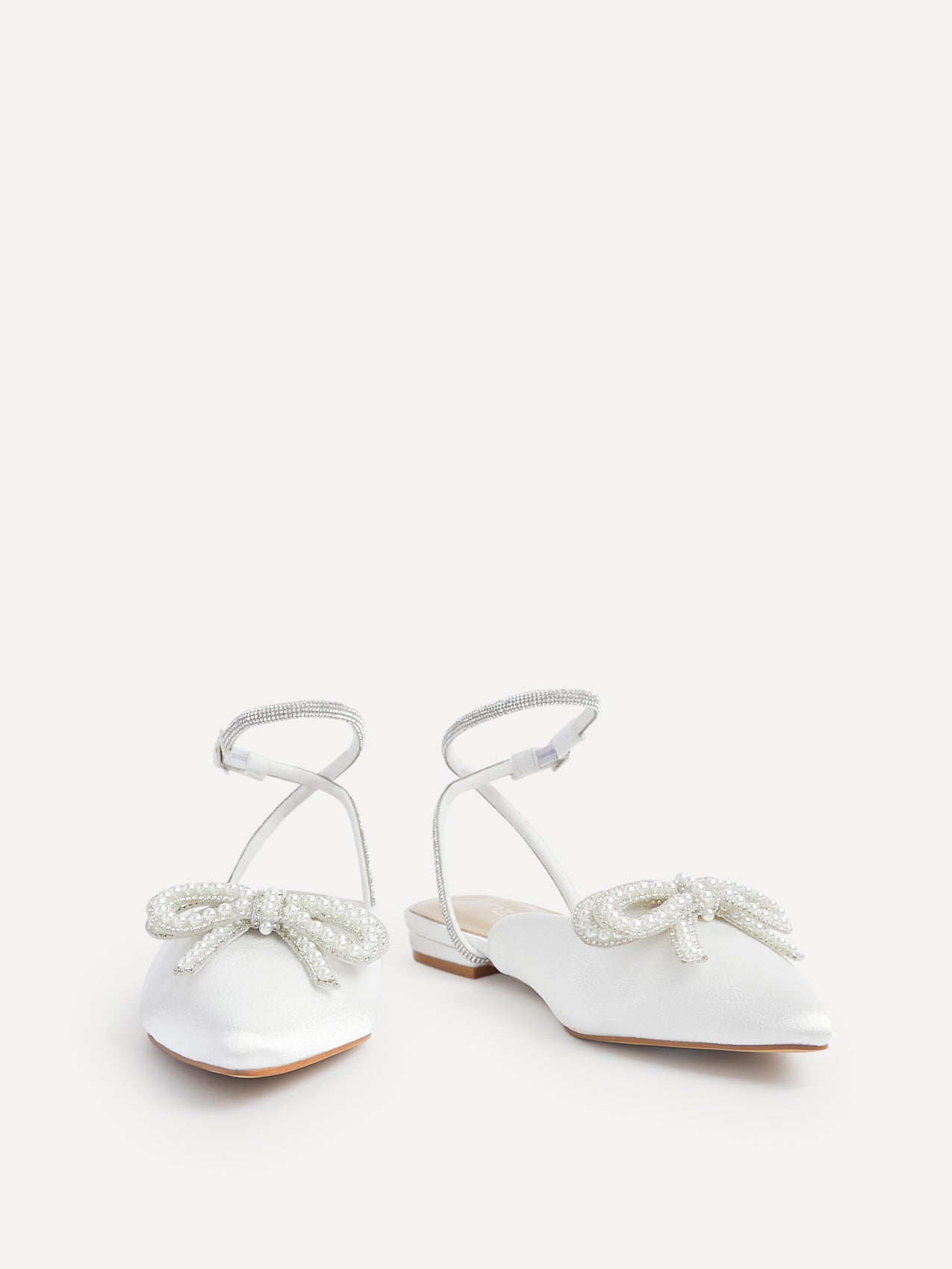 Ivory Satin Bow Embellished Flat Mules