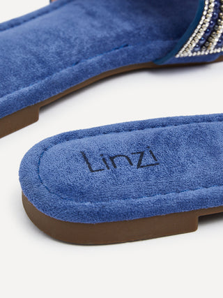Cobalt Blue Suede Aztec Design Embellished Slider Sandal