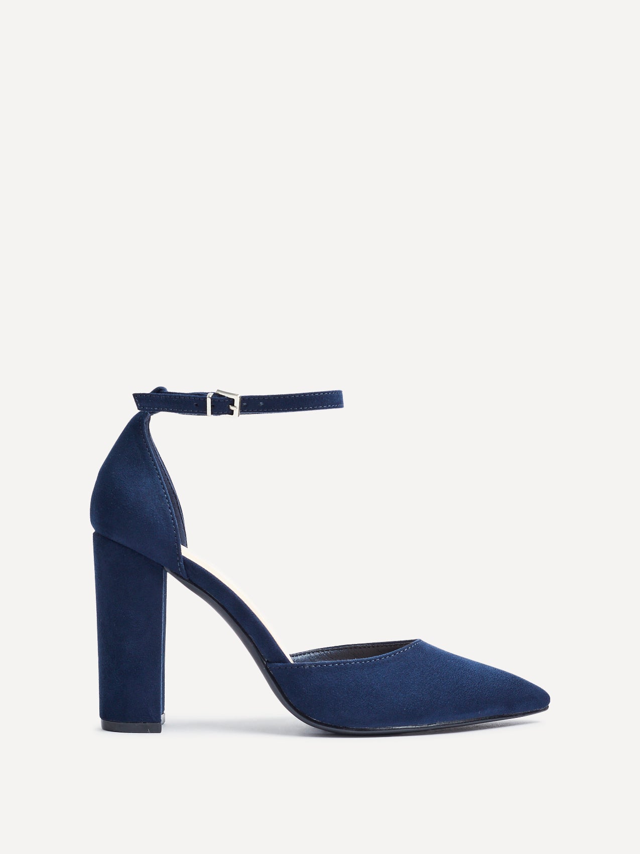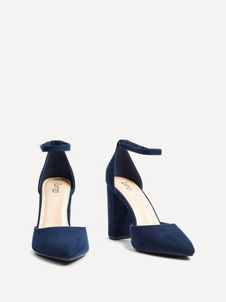 Navy Faux Suede Block Heeled Court Shoe