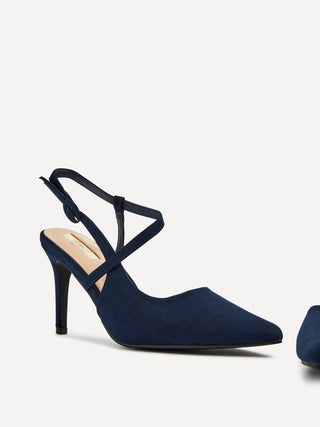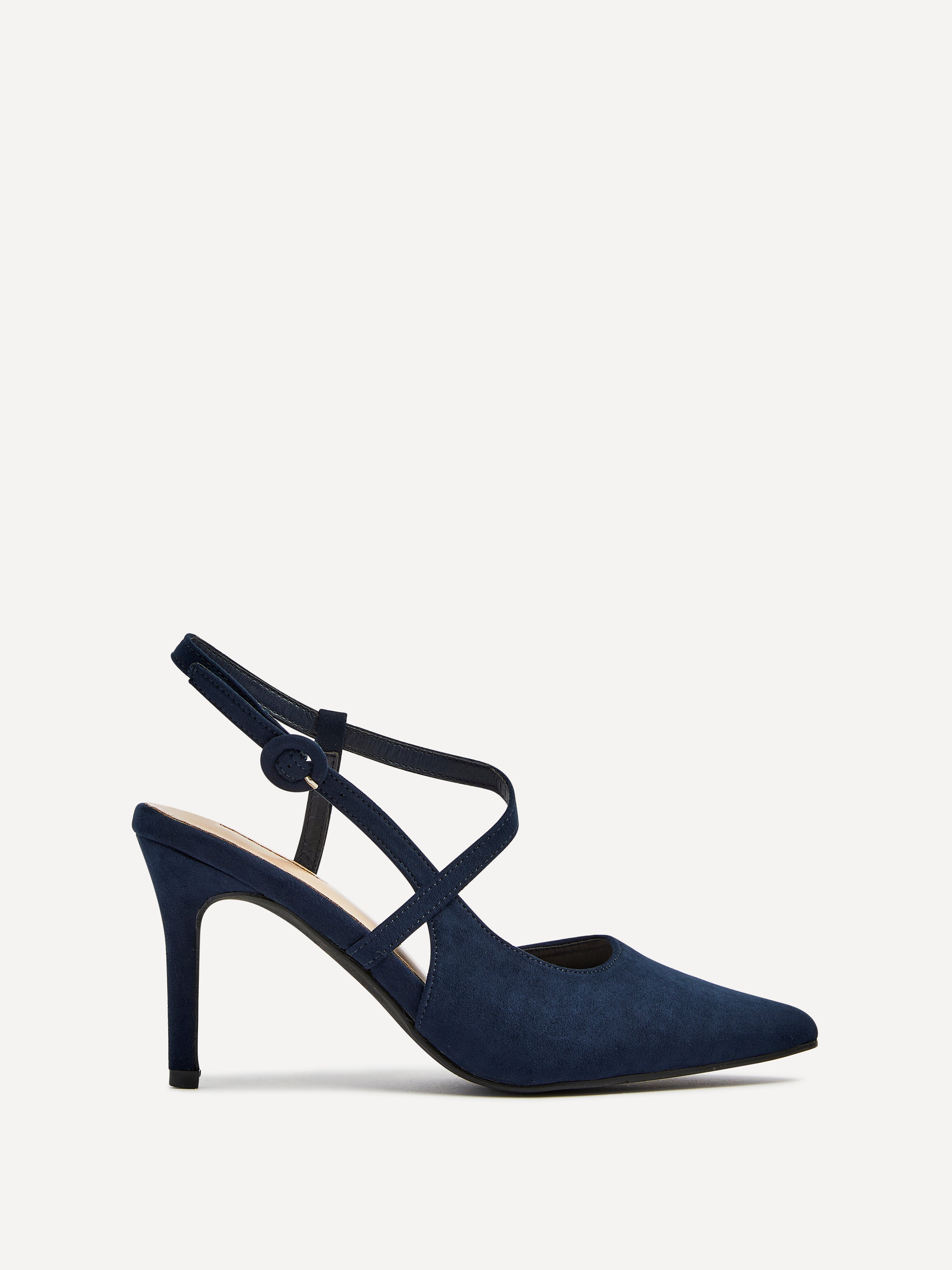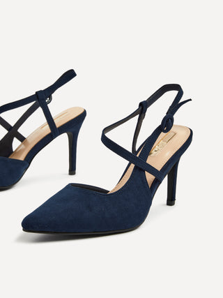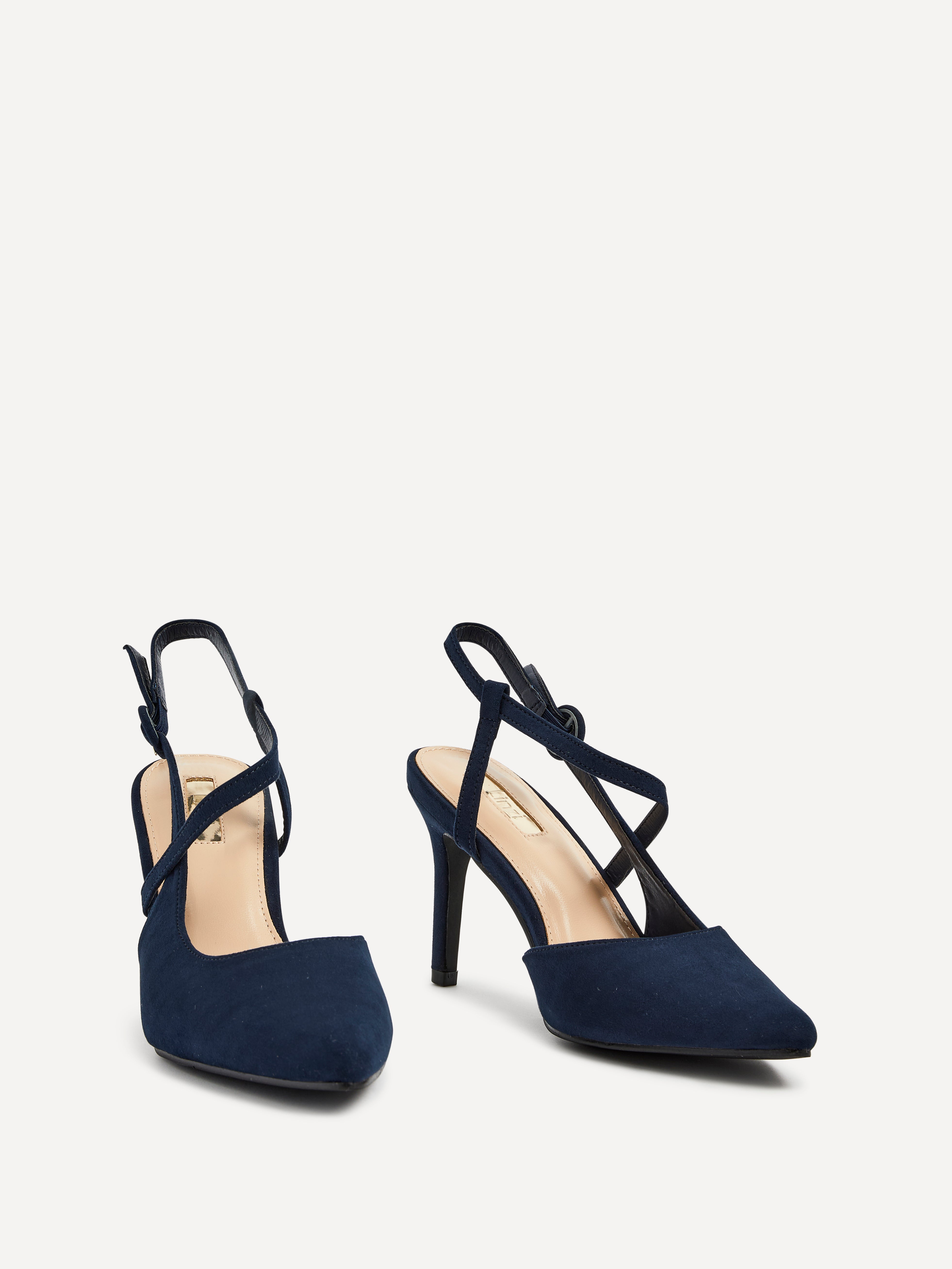 Navy Faux Suede Wrap Around Sandal Black Court Heel