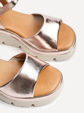 Rose Gold Faux Leather Platform Cleated Sole Flatform Sandal
