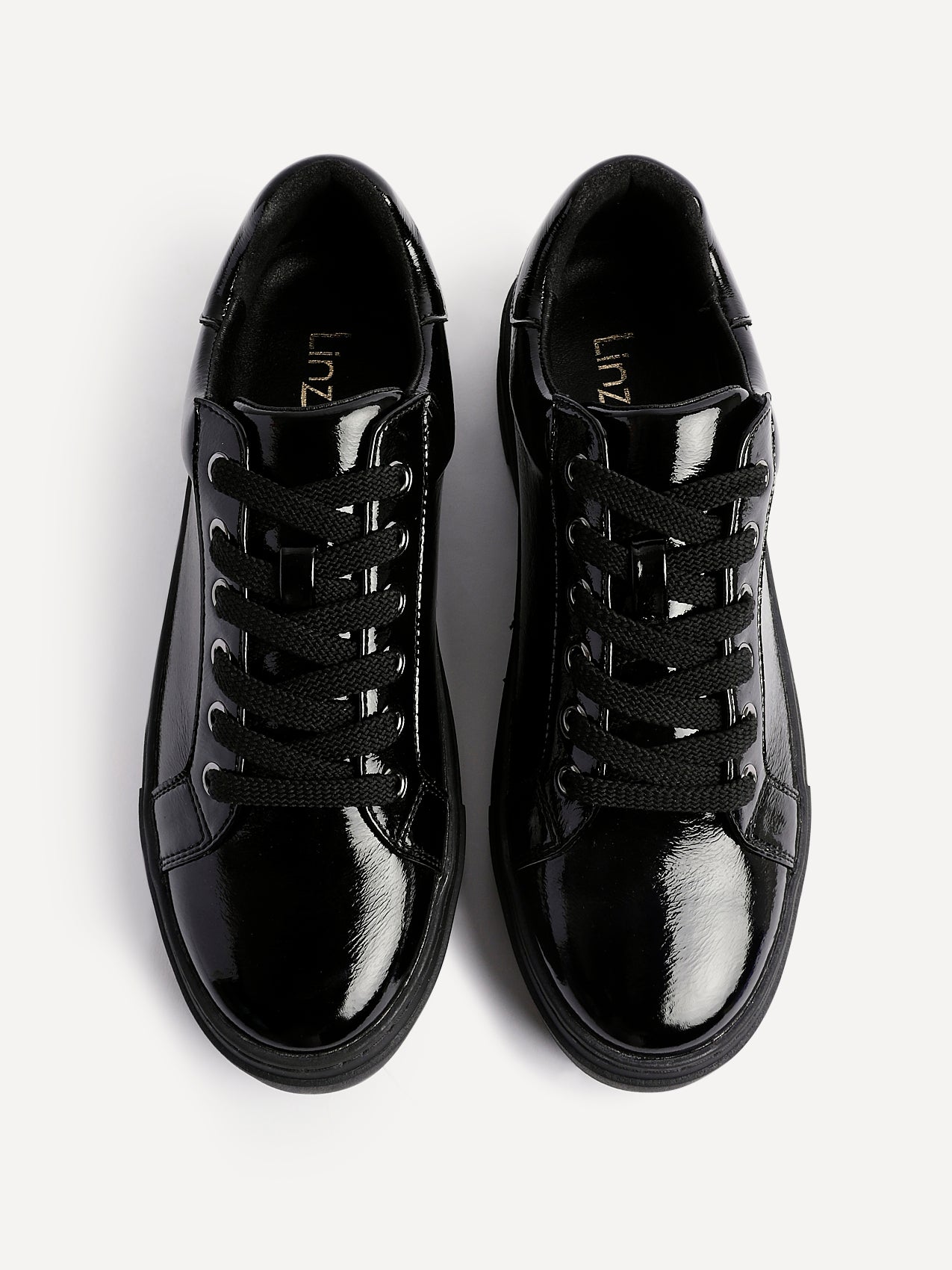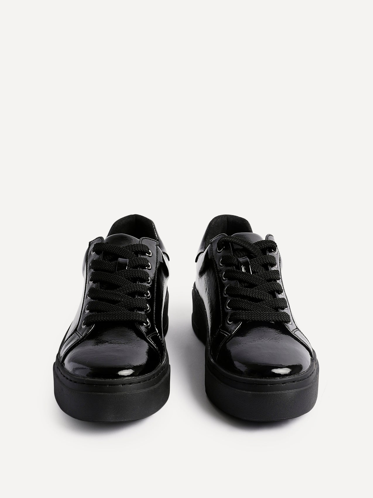 Black Patent Lace Up Flatform Trainers