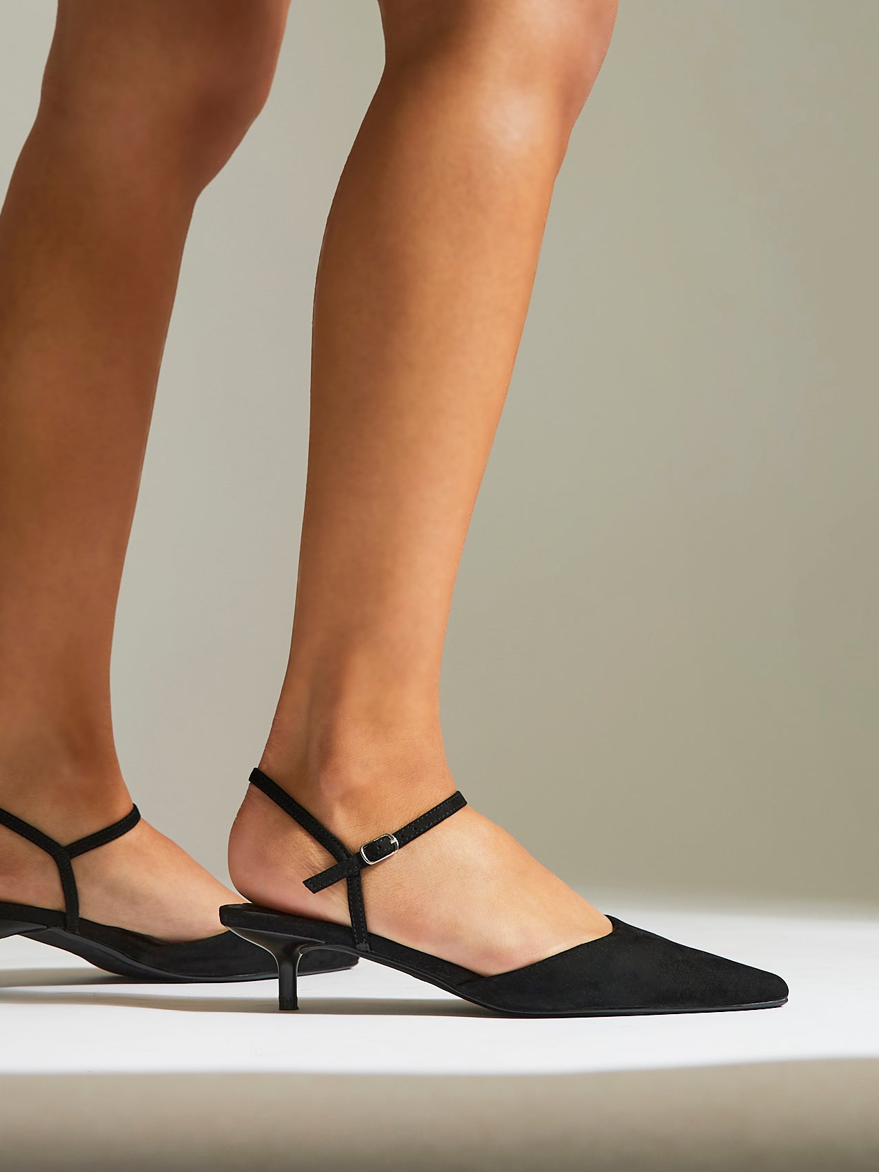 Vogue Black Faux Suede Kitten Court Heels