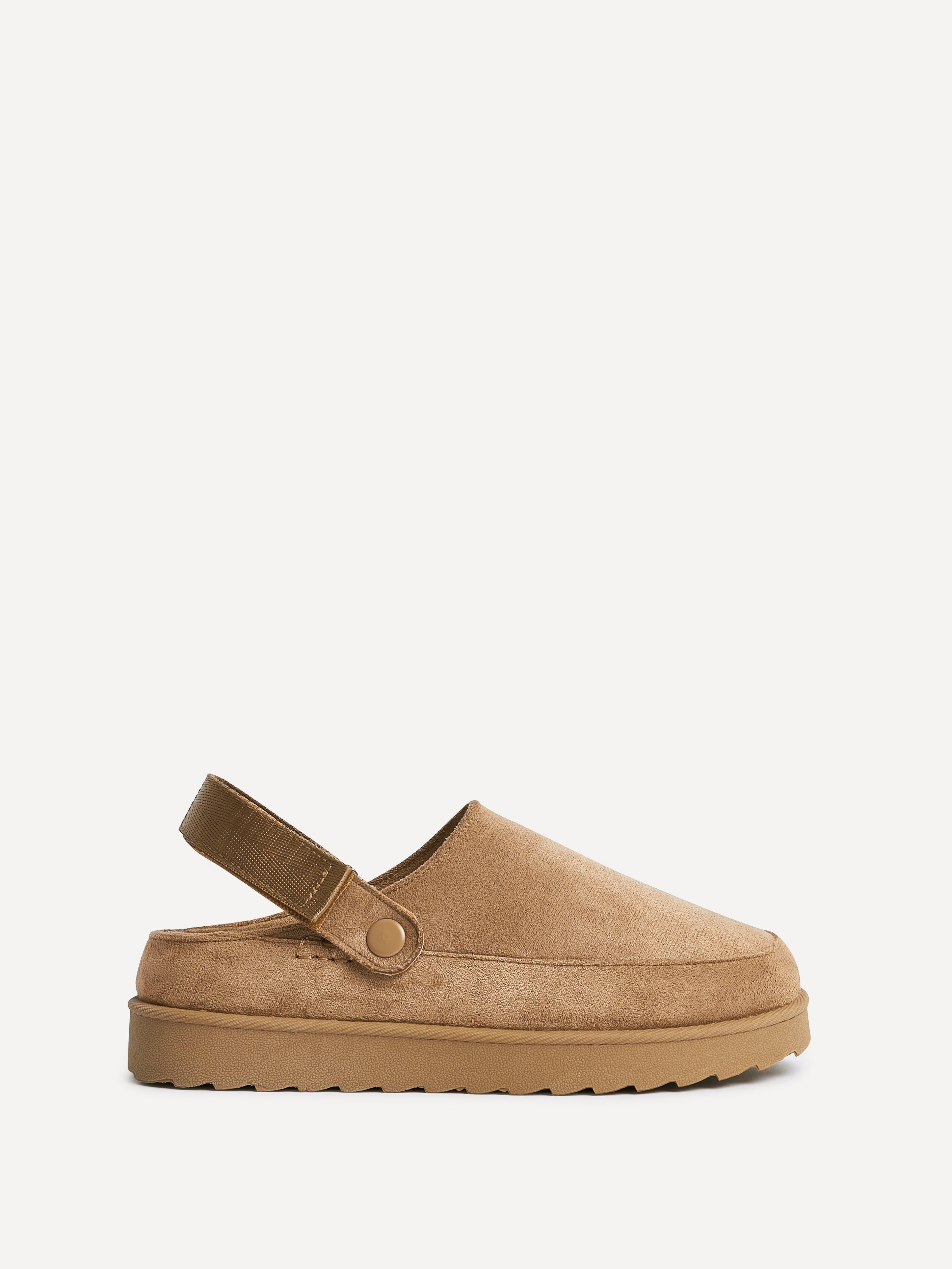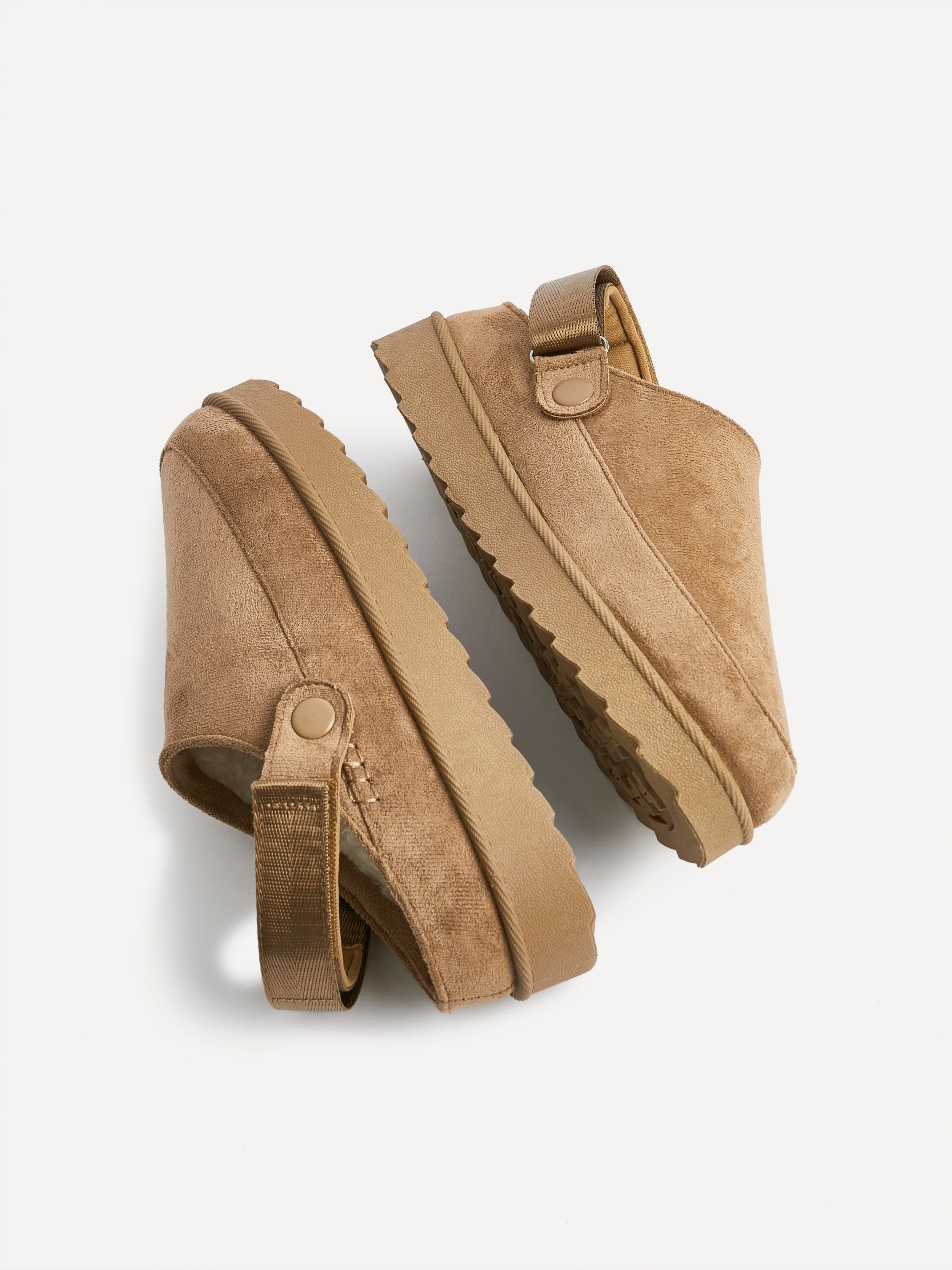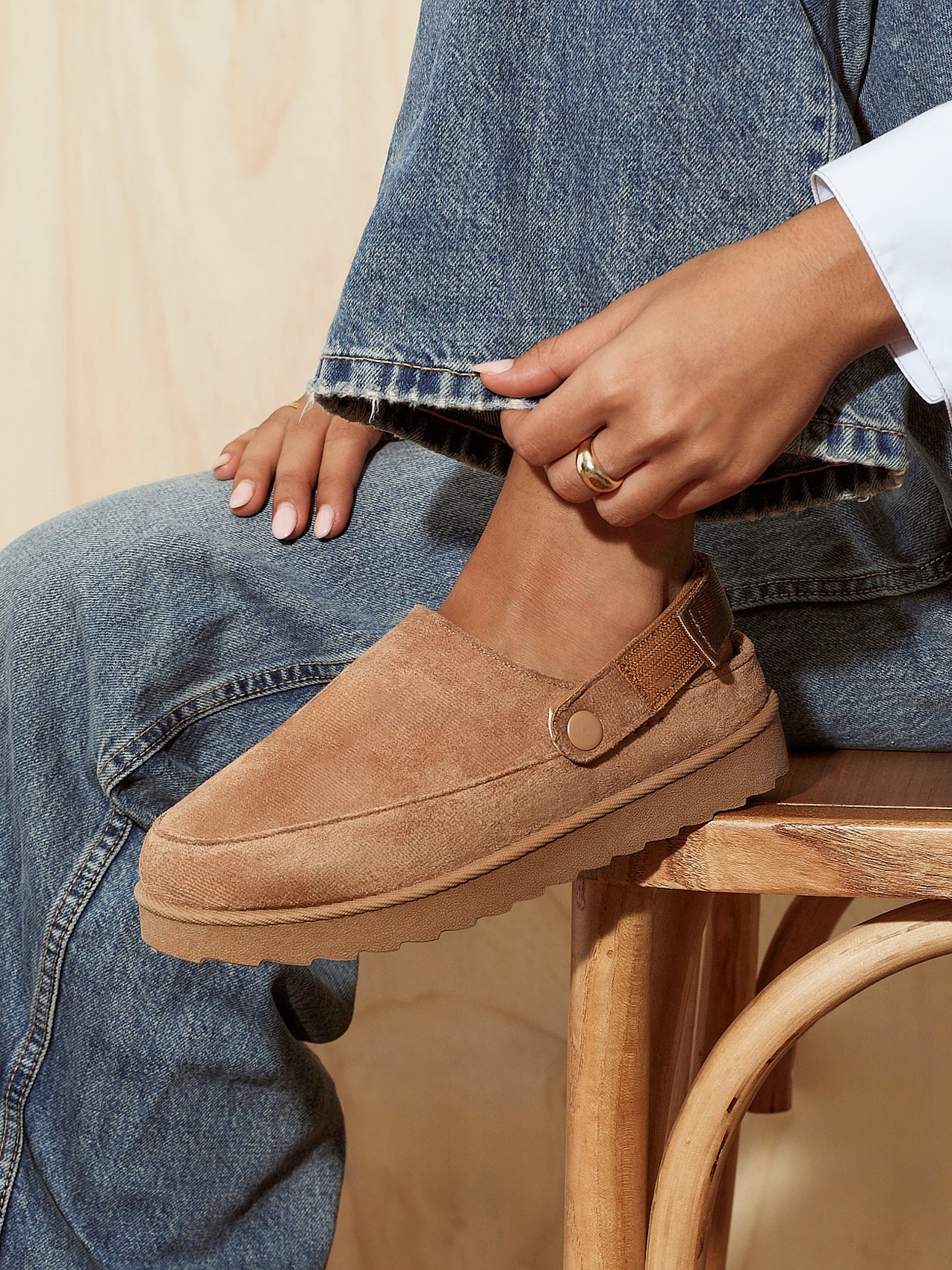 Chestnut Slip-On Slingback Clog With Faux Fur