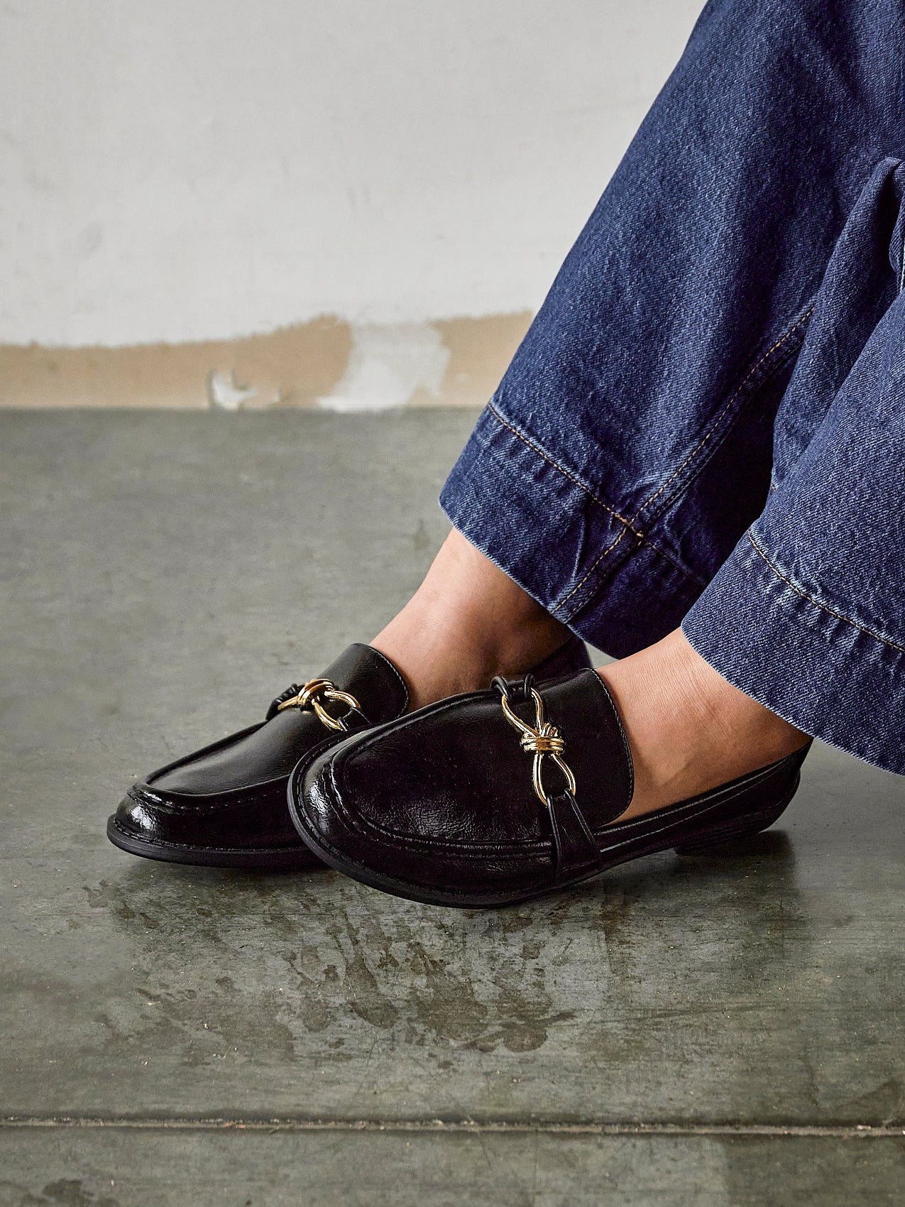 Black Faux Leather Slip On Loafer With Buckle Detail