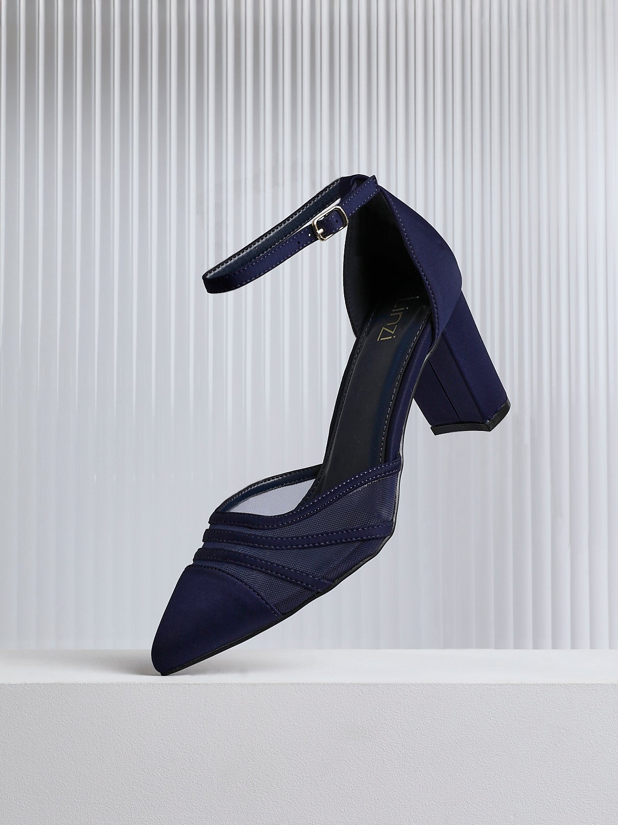 Navy Scuba Block Court Heel With Mesh Front Detail