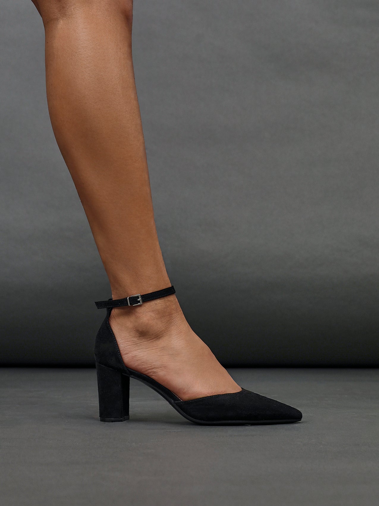 Black Faux Suede Closed Back Block Heeled Court Shoe