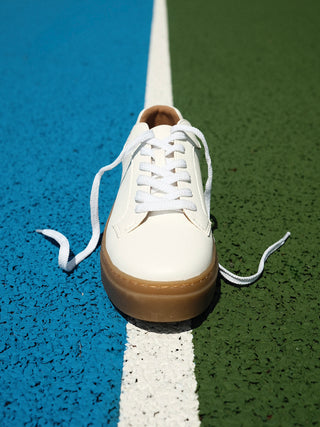 White Faux Leather Lace-Up Flatform Trainers With Gum Sole