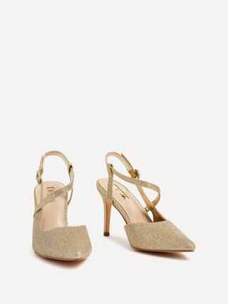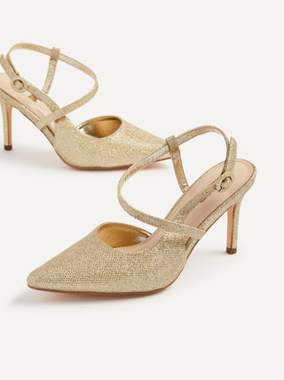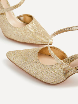 Gold Glitter Wrap Around Sandal Black Court Heel
