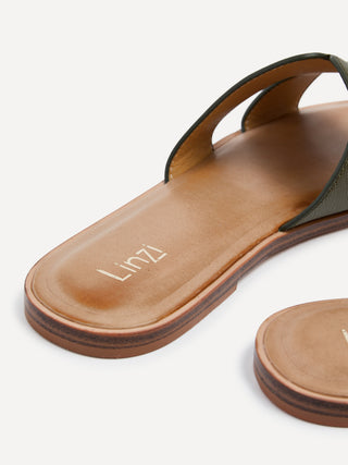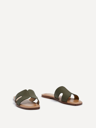 Khaki Faux Leather Link Design Flat Sandal