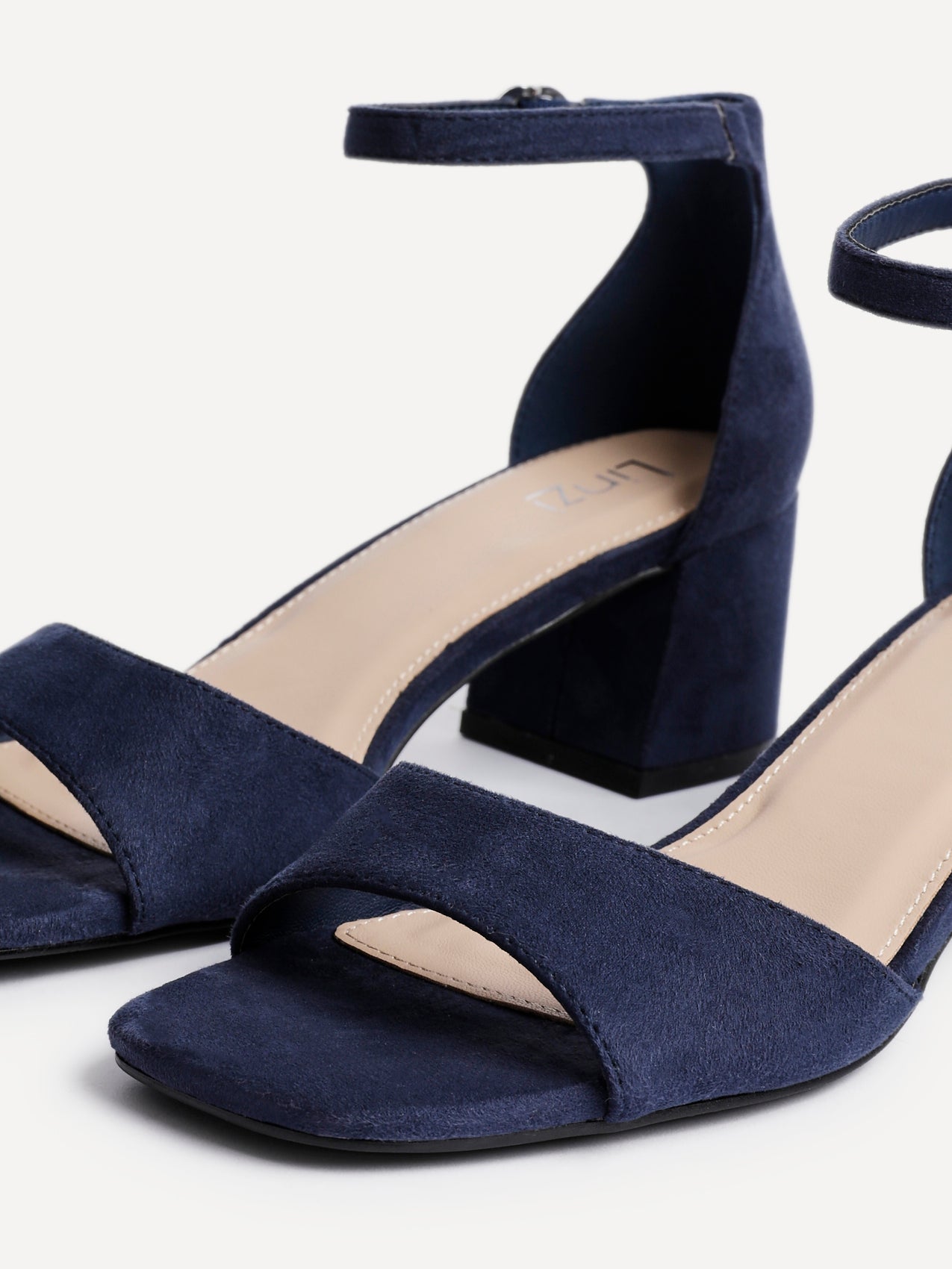 Navy Faux Suede Closed Back Block Heeled Sandals