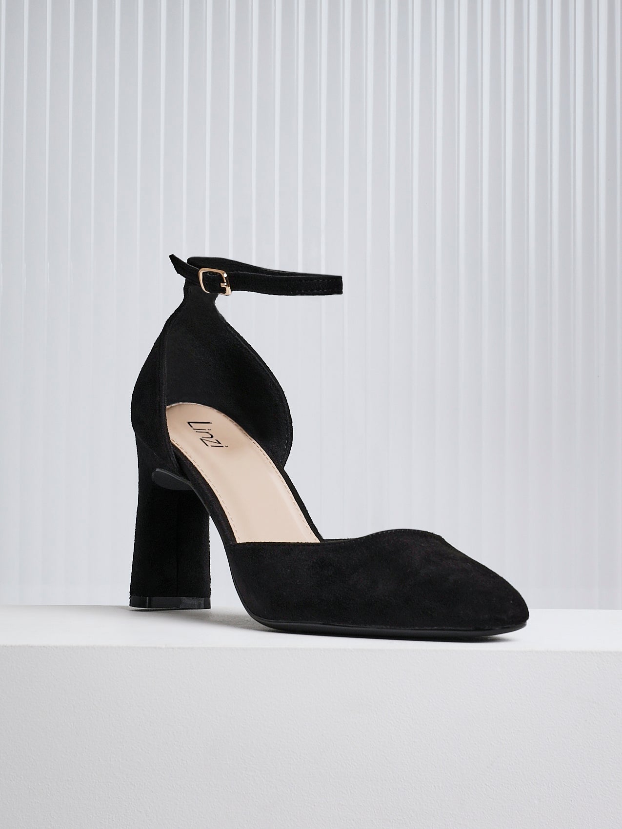 Black Faux Suede Square Toe Court Heel