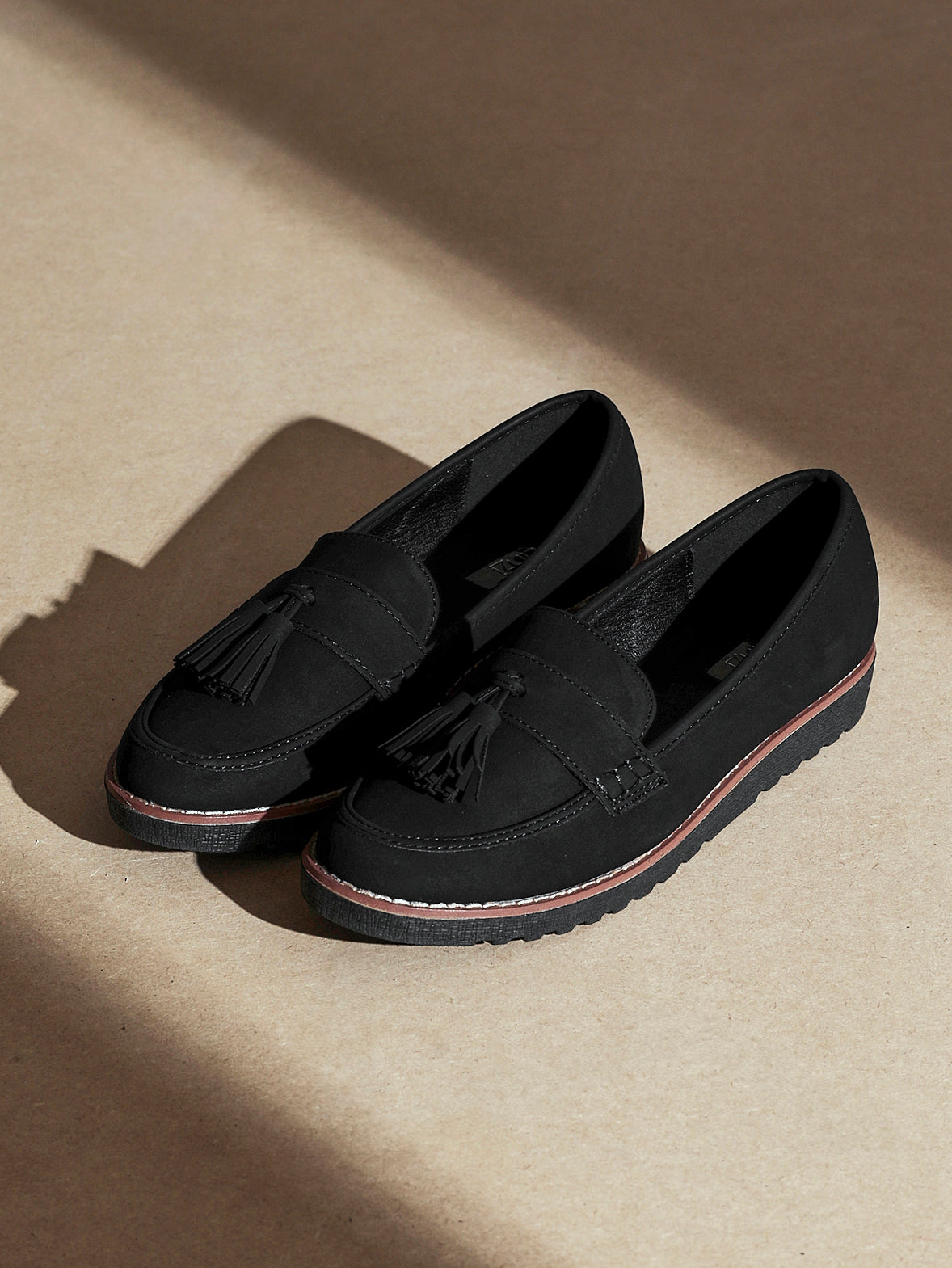 Black Nubuck Classic Slip On Loafer With Tassel Detail