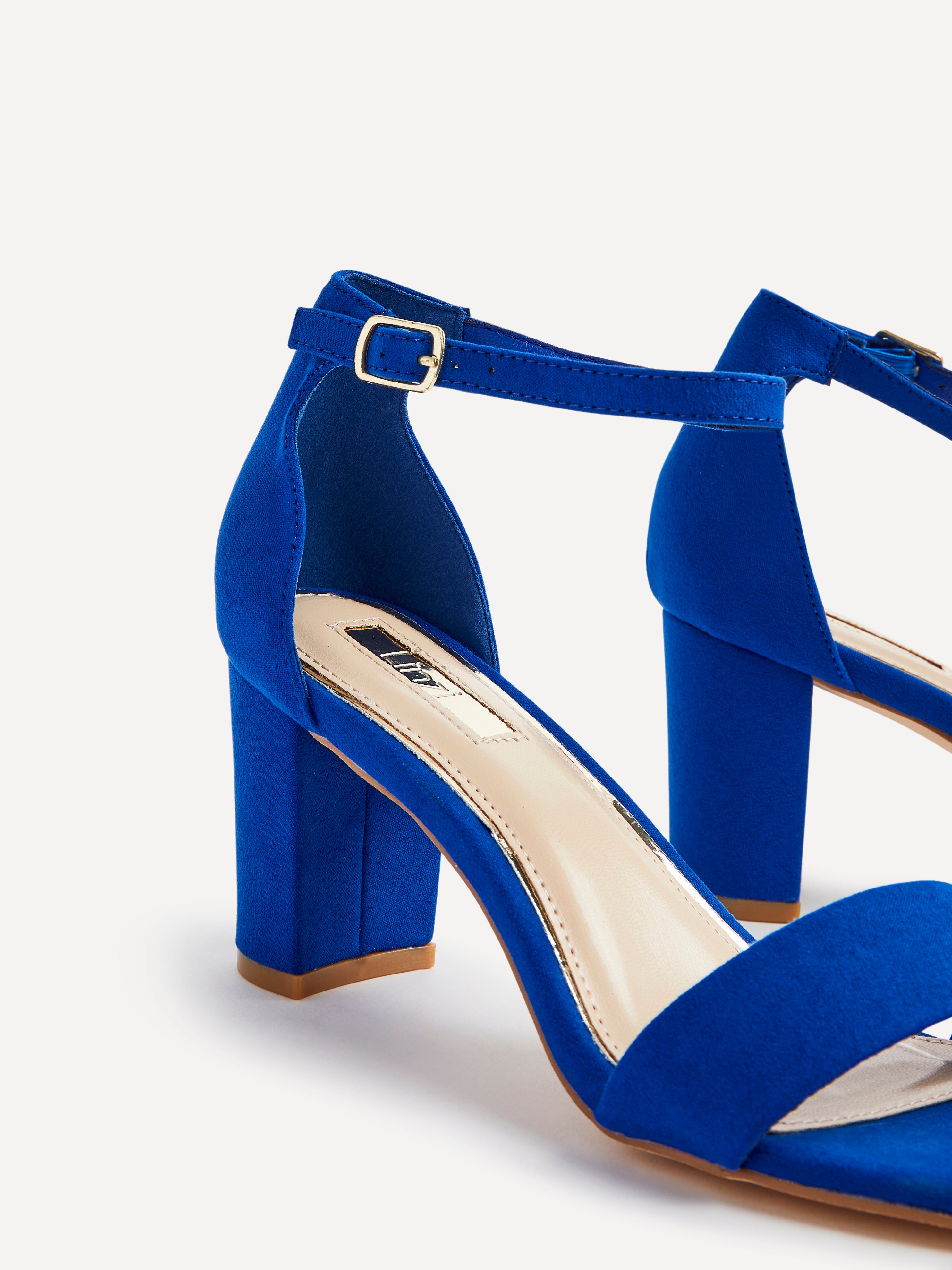 Wide Fit Cobalt Blue Faux Suede Closed Back Block Heel