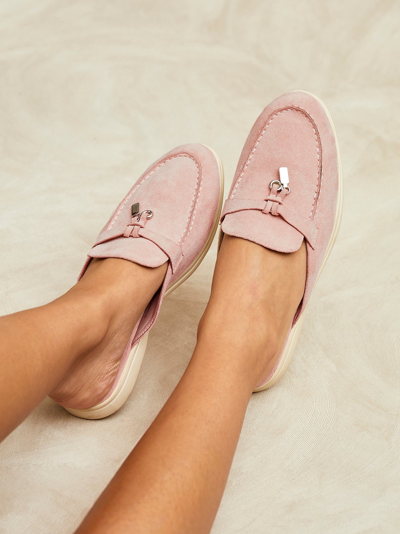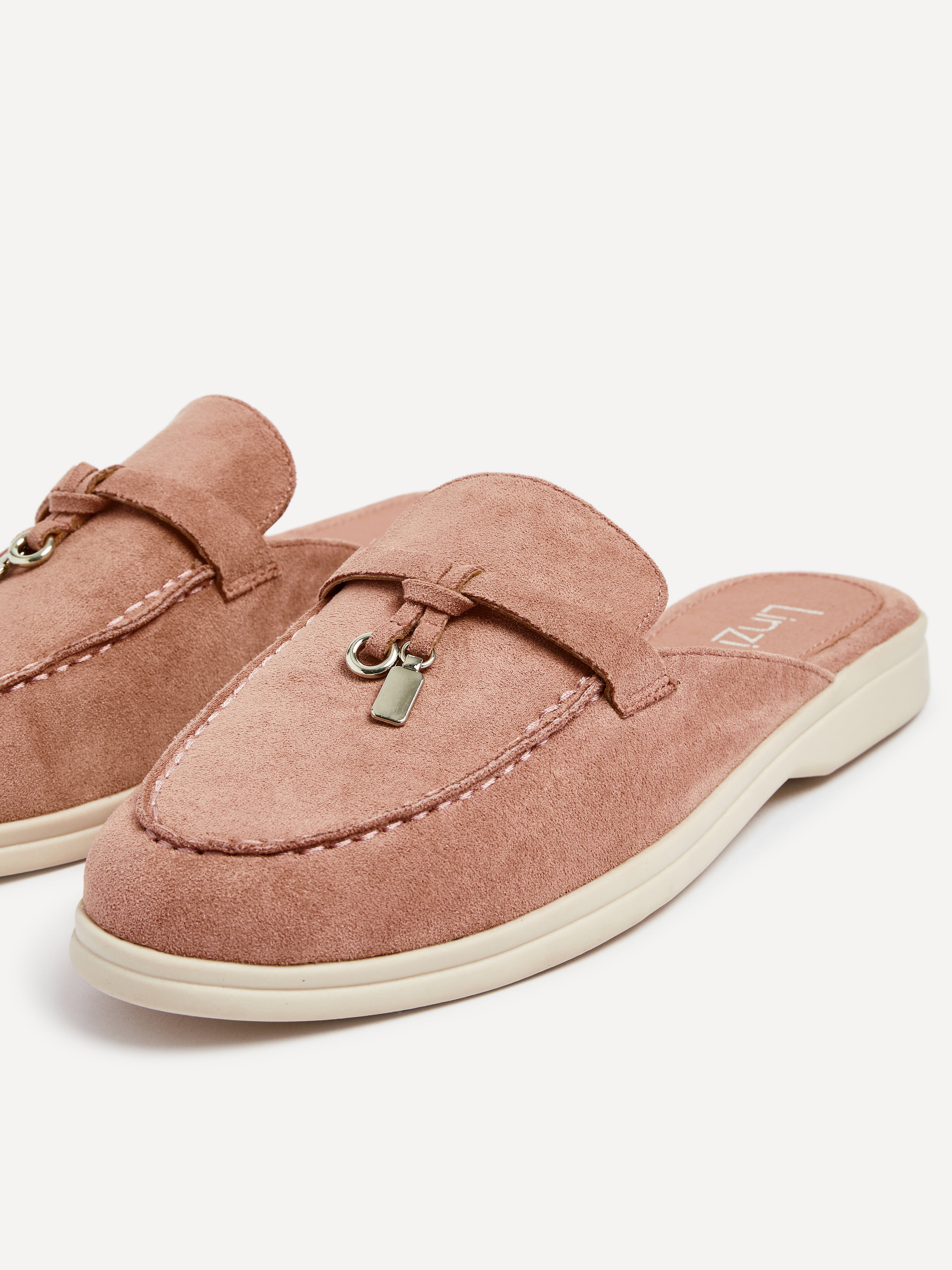 Pink Faux Suede Slip On Mule