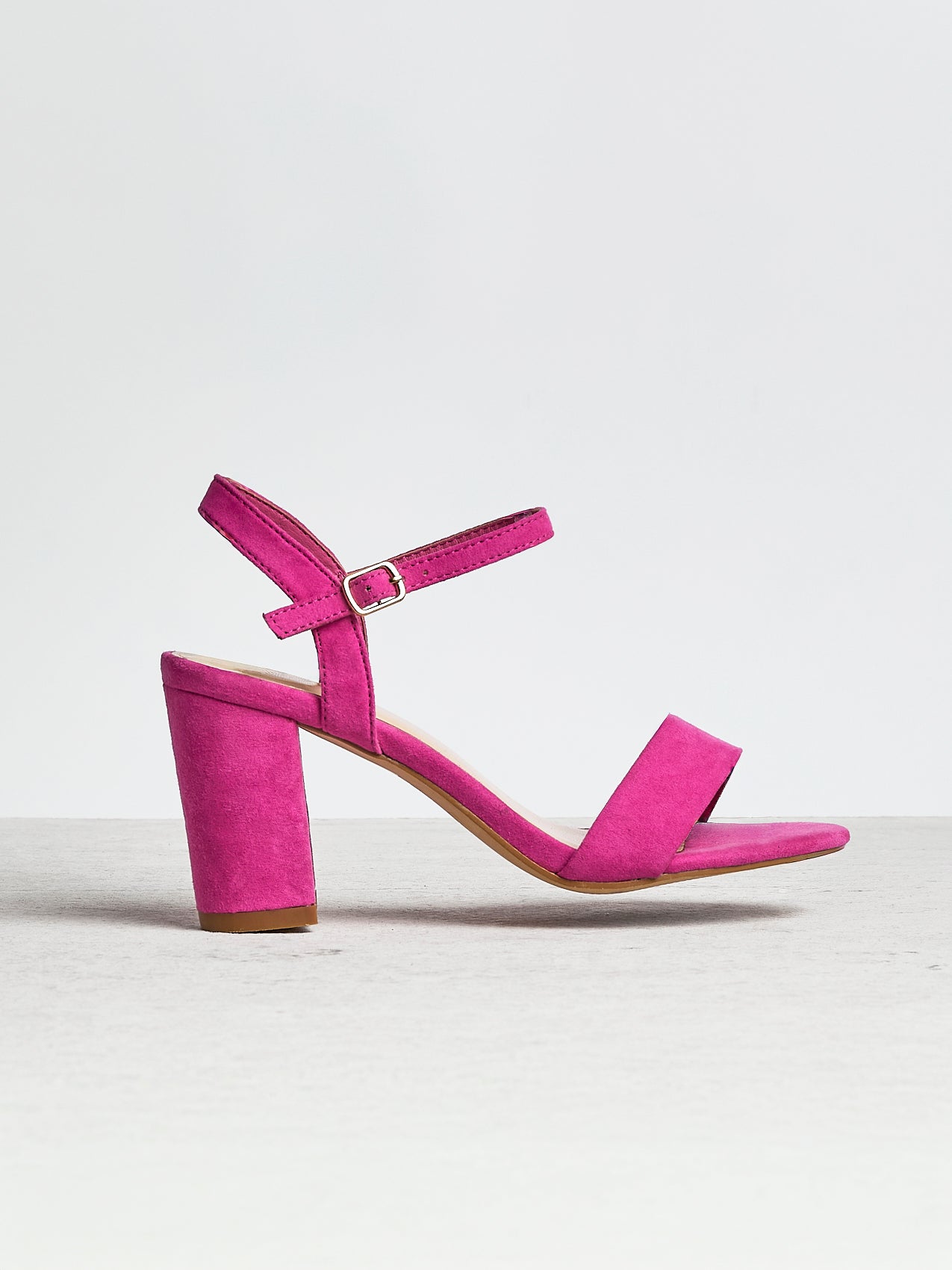 Pink Faux Suede Open Back Barely There Block Heeled Sandal