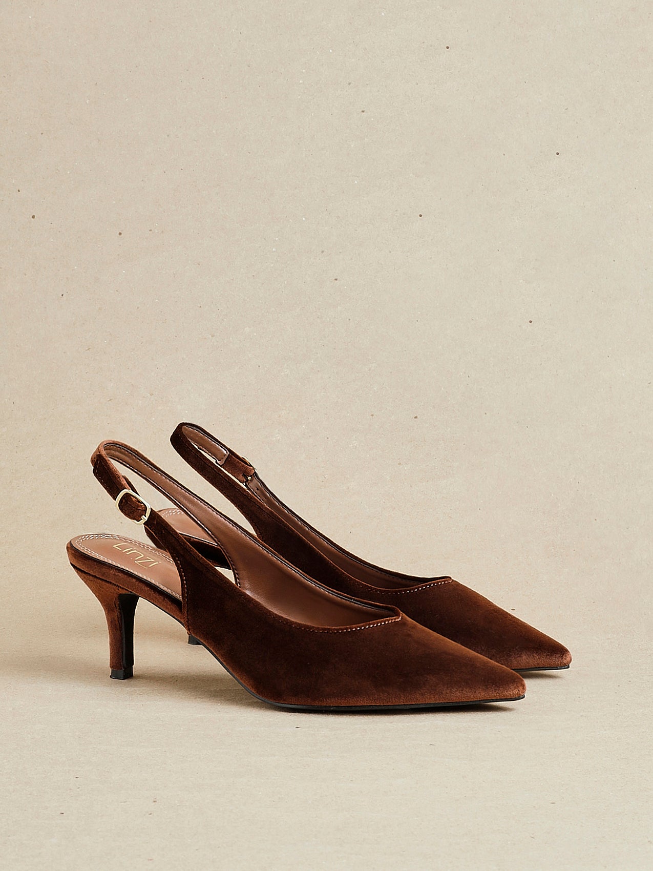 Brown Velvet Pointed Slingback Stiletto Court Heels