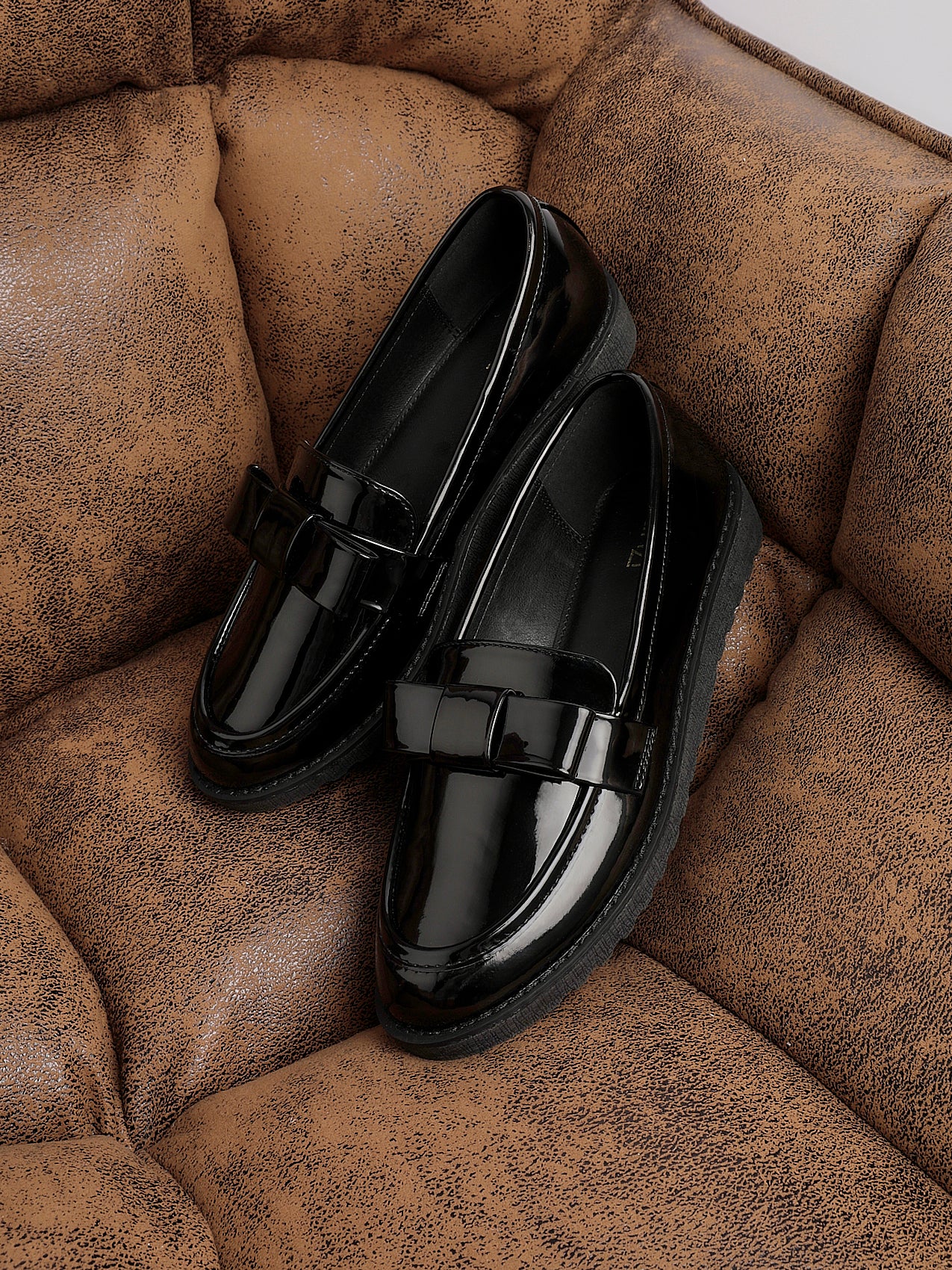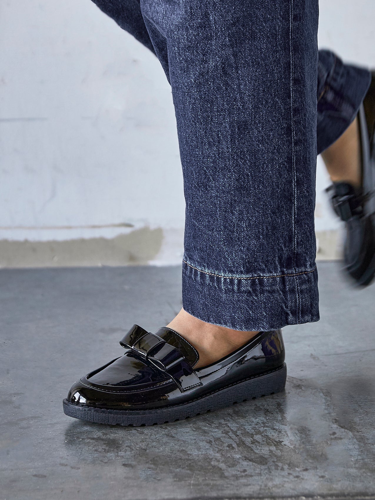 Black Patent Classic Slip On Loafer With Bow Detail