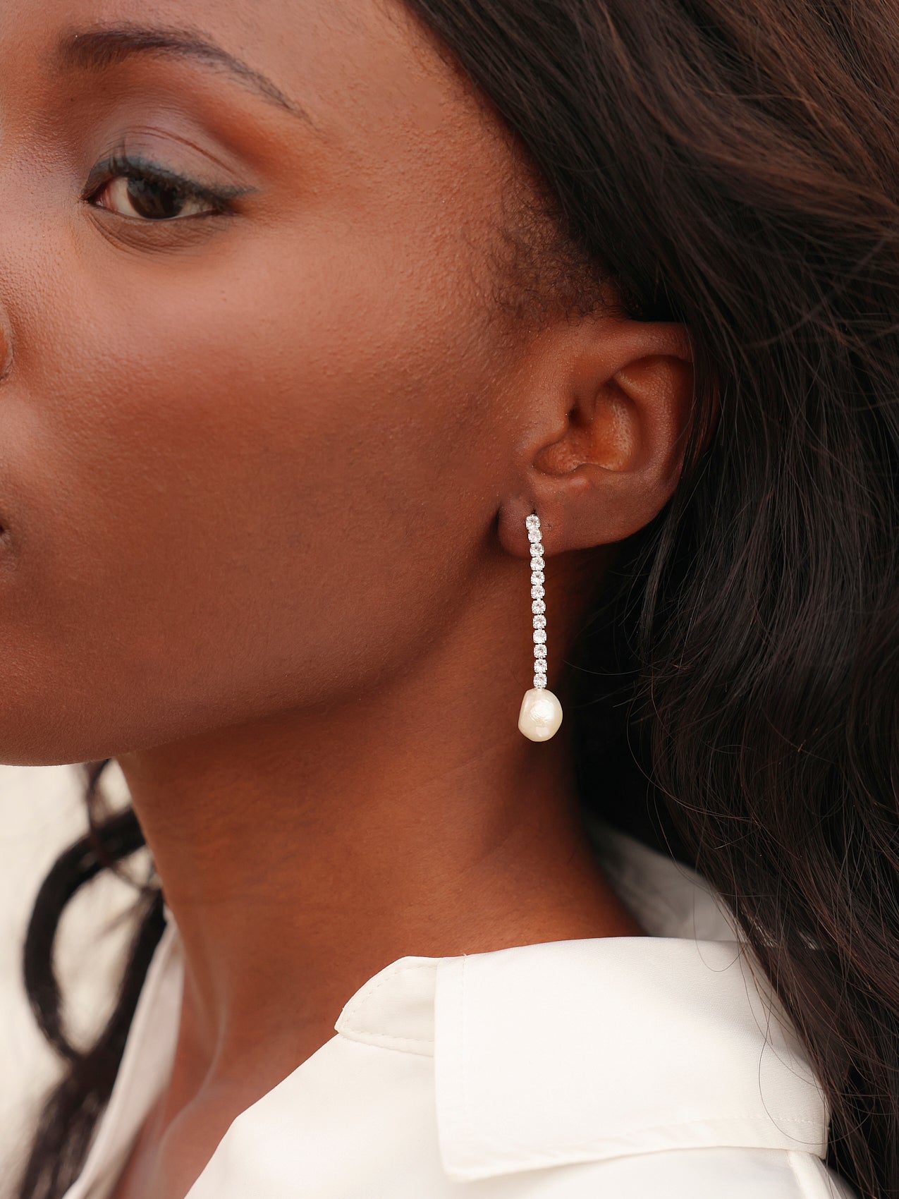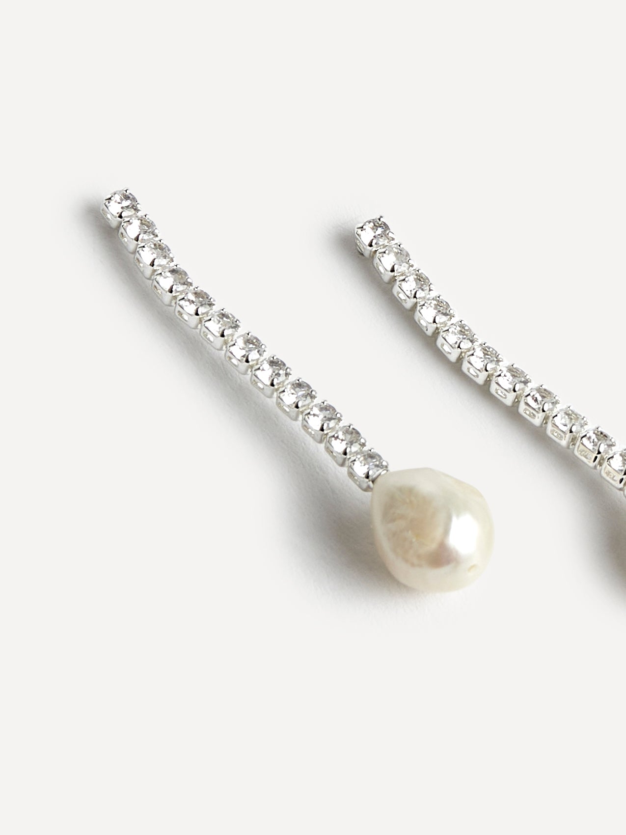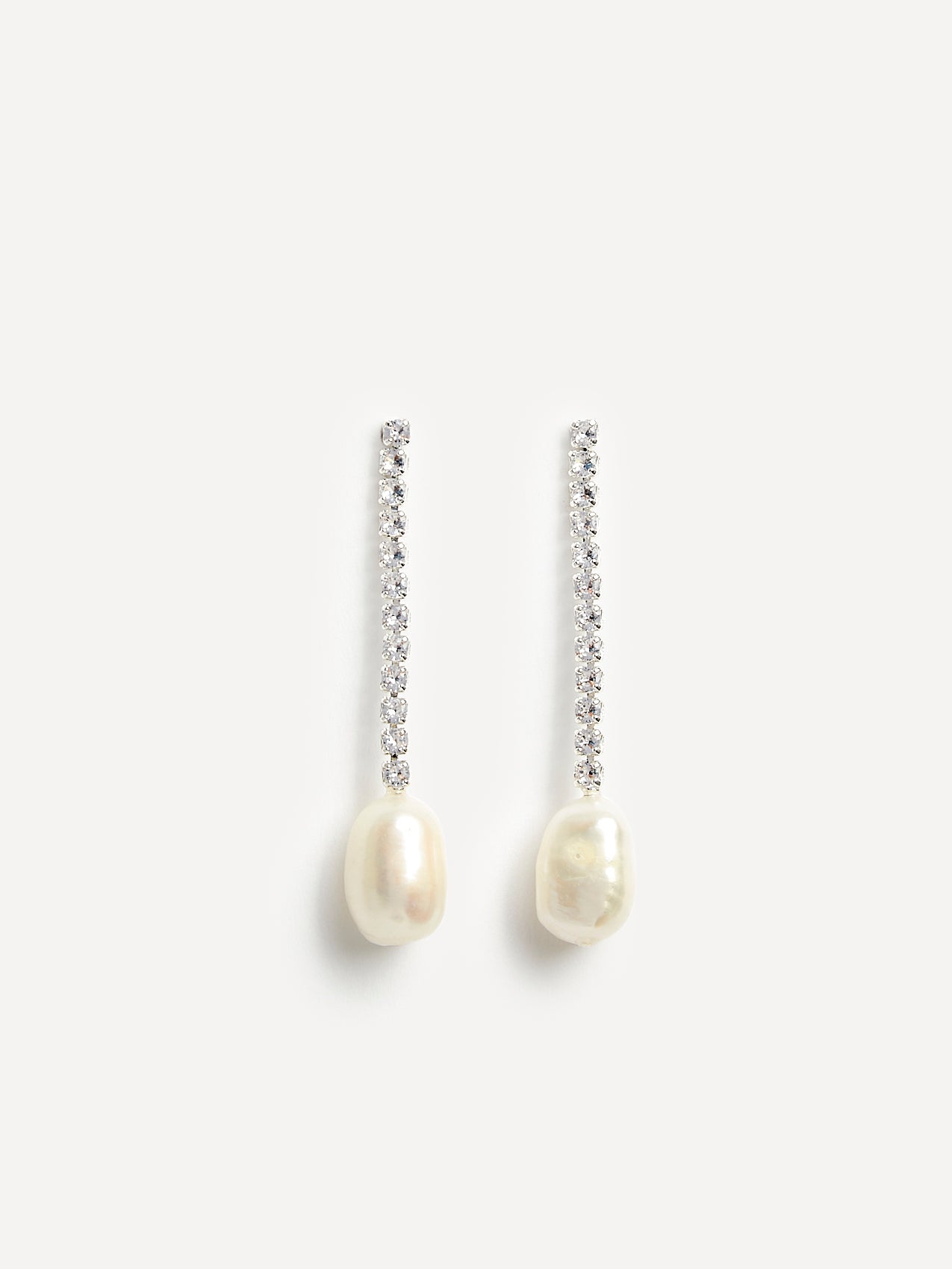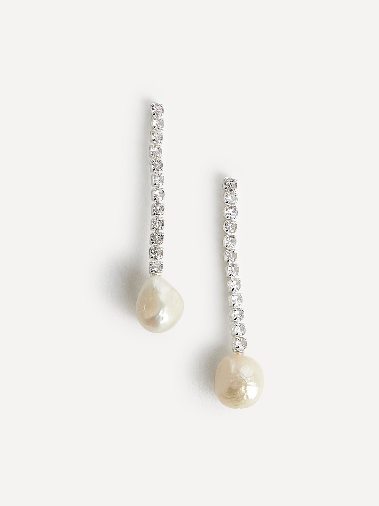 Silver Crystal Drop Irregular Pearl Earrings